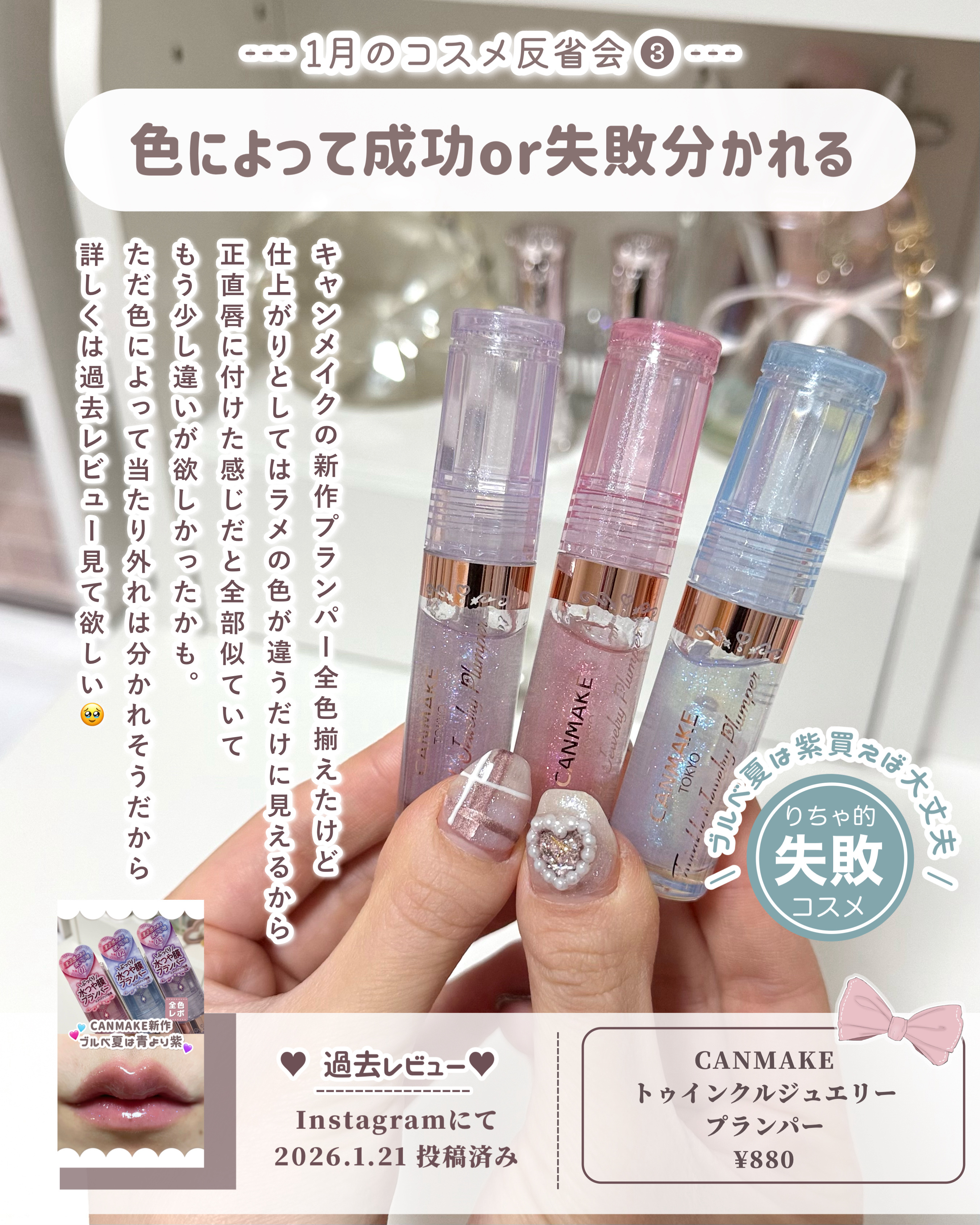 | 口紅・グロス・リップライナーランキング第64位 | 宝石みたいなちゅるんラメのグロスであまりにも可愛すぎる | 詳細を見る |