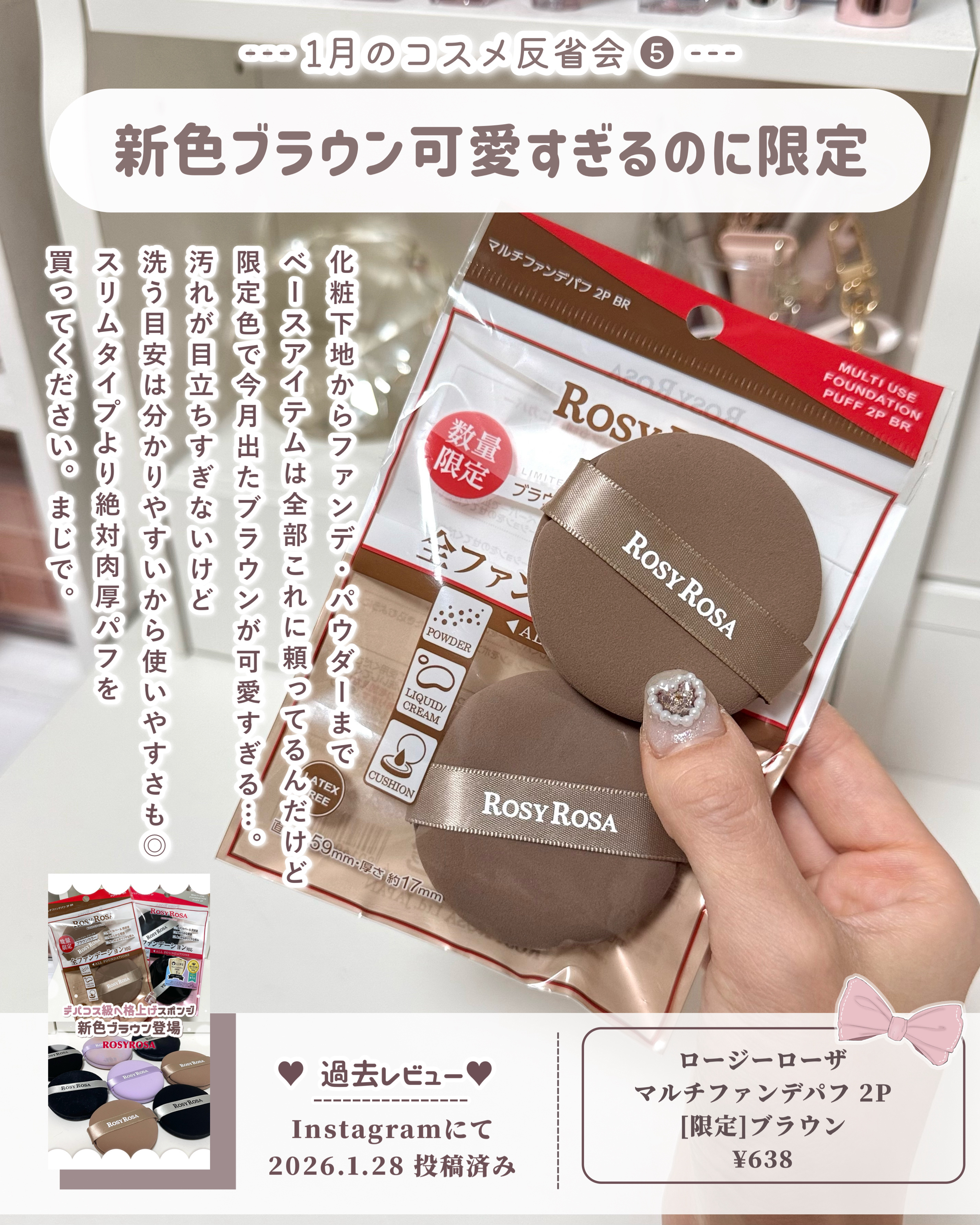 ロージーローザ マルチファンデパフ 2P | 638円 |