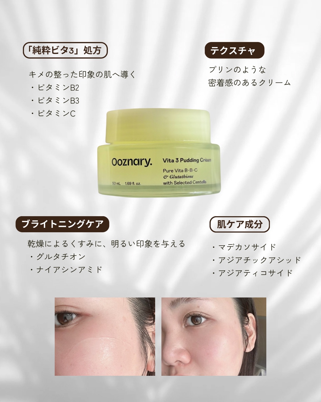 #PR#ooznary@ooznary_jpOoznaryビタ3プリンクリーム💛夜のあいだに集中ケア!ビタミンB3*・クリアビタミンC*(メラニンにアプローチ)、ビタミンB2*(くすんだ肌の印象*¹をケア)、ツボクサ3種*²配合。*保湿成分*...