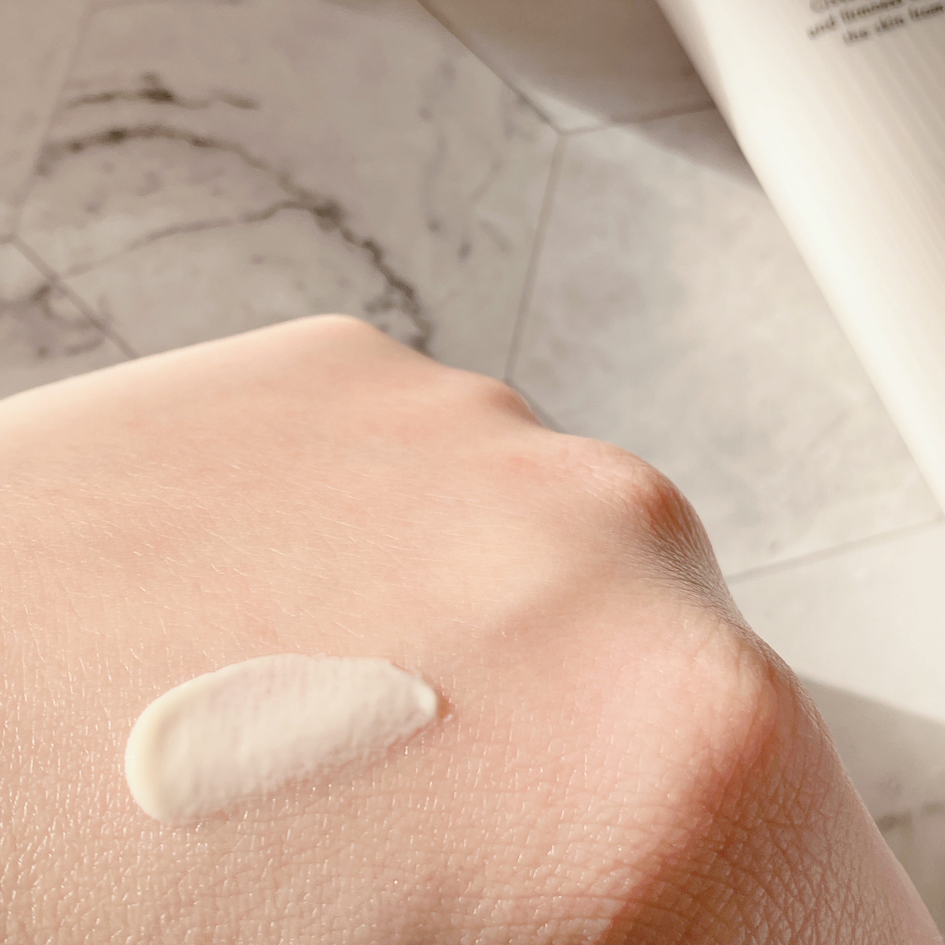 手に乗せた感じだと少し重そうなテクスチャーだなと思いましたが、軽いつけ心地で伸ばしやすい。 クリームで油ぽくないので、脂性肌よりの私でも全顔で使えました! 肌が敏感な方や乾燥ぎみな方は肌がピリつくかもと書いてありましたが、私はピリつきもなかったです! ピリつきがあった方はしっかりと保湿してから塗るといいそうです😌💕