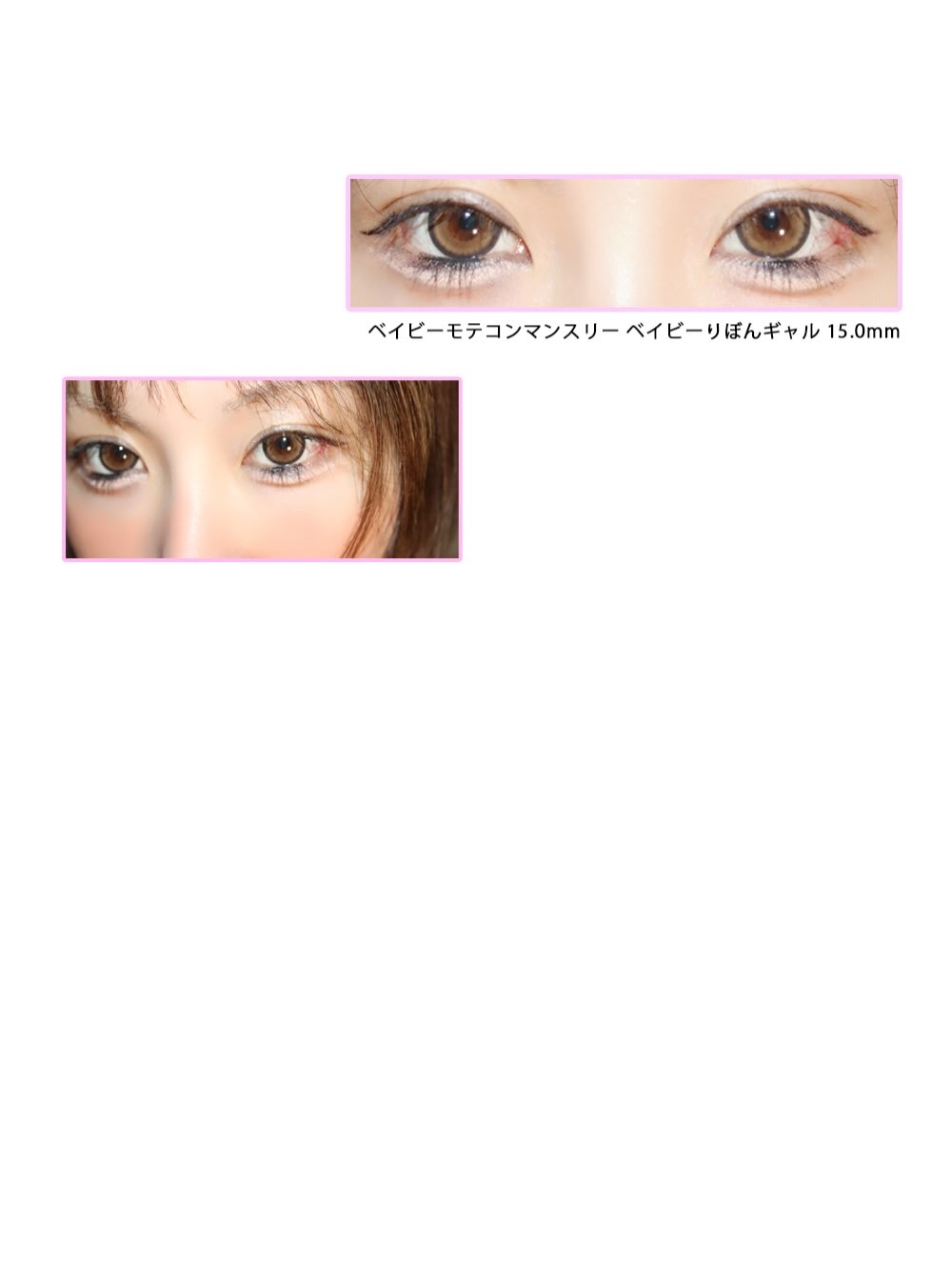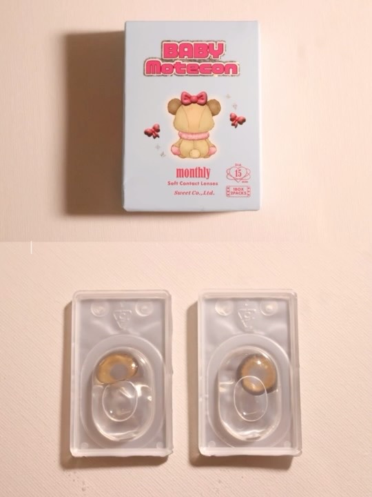 PRベイビーモテコンマンスリーベイビーリボンギャル👀💫15.0 mmのやわらかベージュで、目がぱっちり大きく見えちゃう✨ビッグレンズだけどデザインが自然に馴染むから雰囲気アップ♡派手すぎないからデイリーにもぴったり💛ブラウン&ベージュ系で肌色...