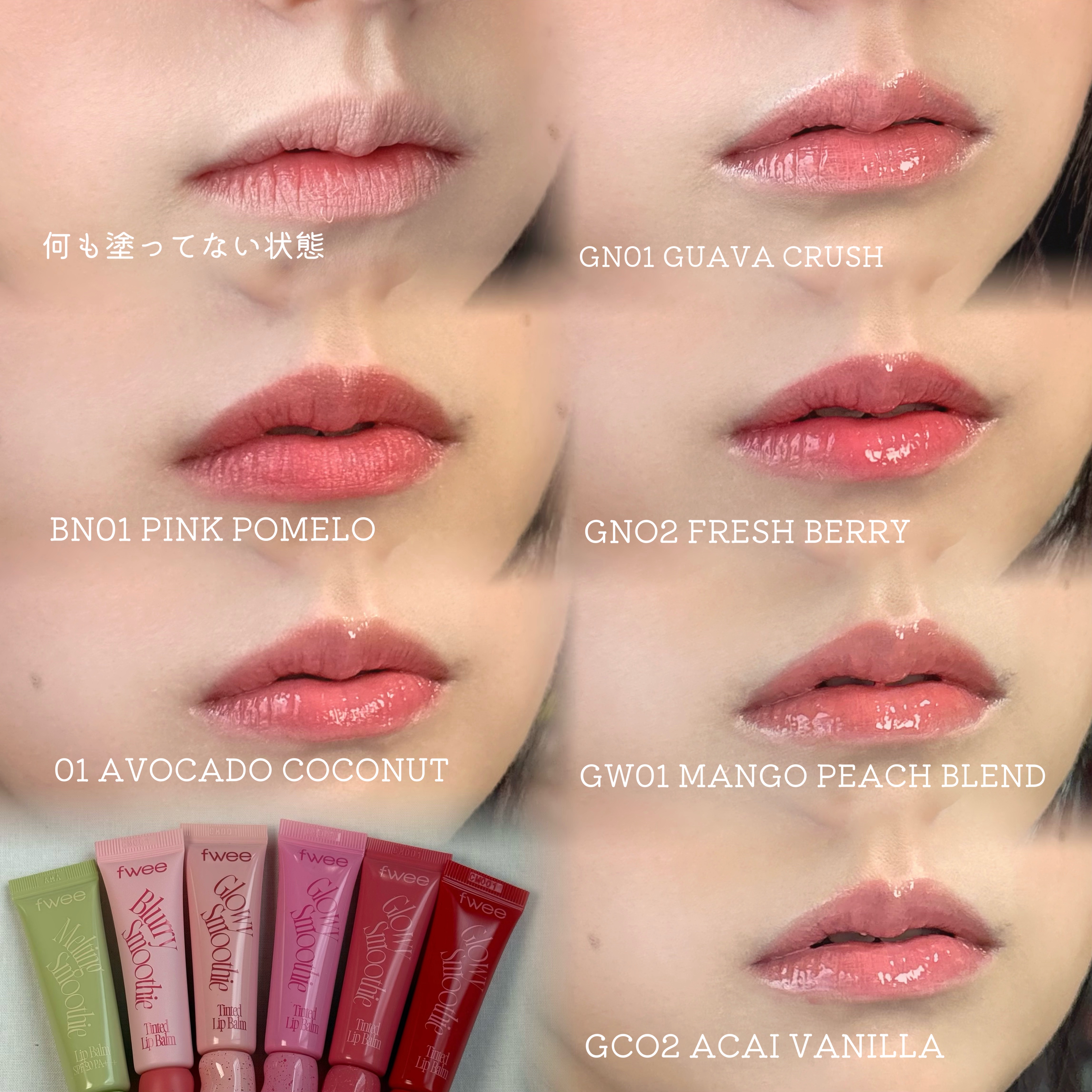 ⟡fwee新作スムージーリップバーム︎⟡🍑🍨💝🫐🎀🥑カラーもケアもこれ1本で完結.ᐟ血色感でてぷるぷる赤ちゃん唇になれるglowがお気に入り🌟👶🏻🍼#Fwee#韓国コスメ#むーんぱわーさろんで頂きました🌙@fwee_makeup_jp#gif...