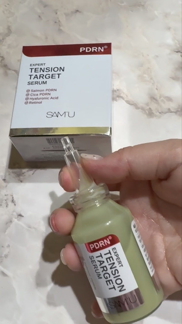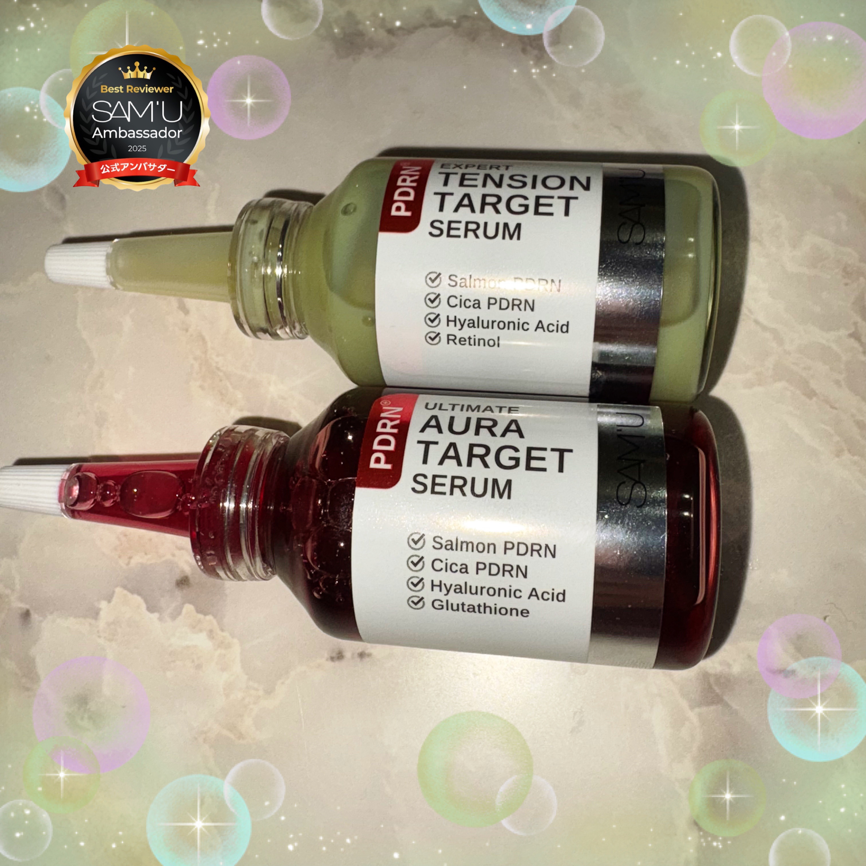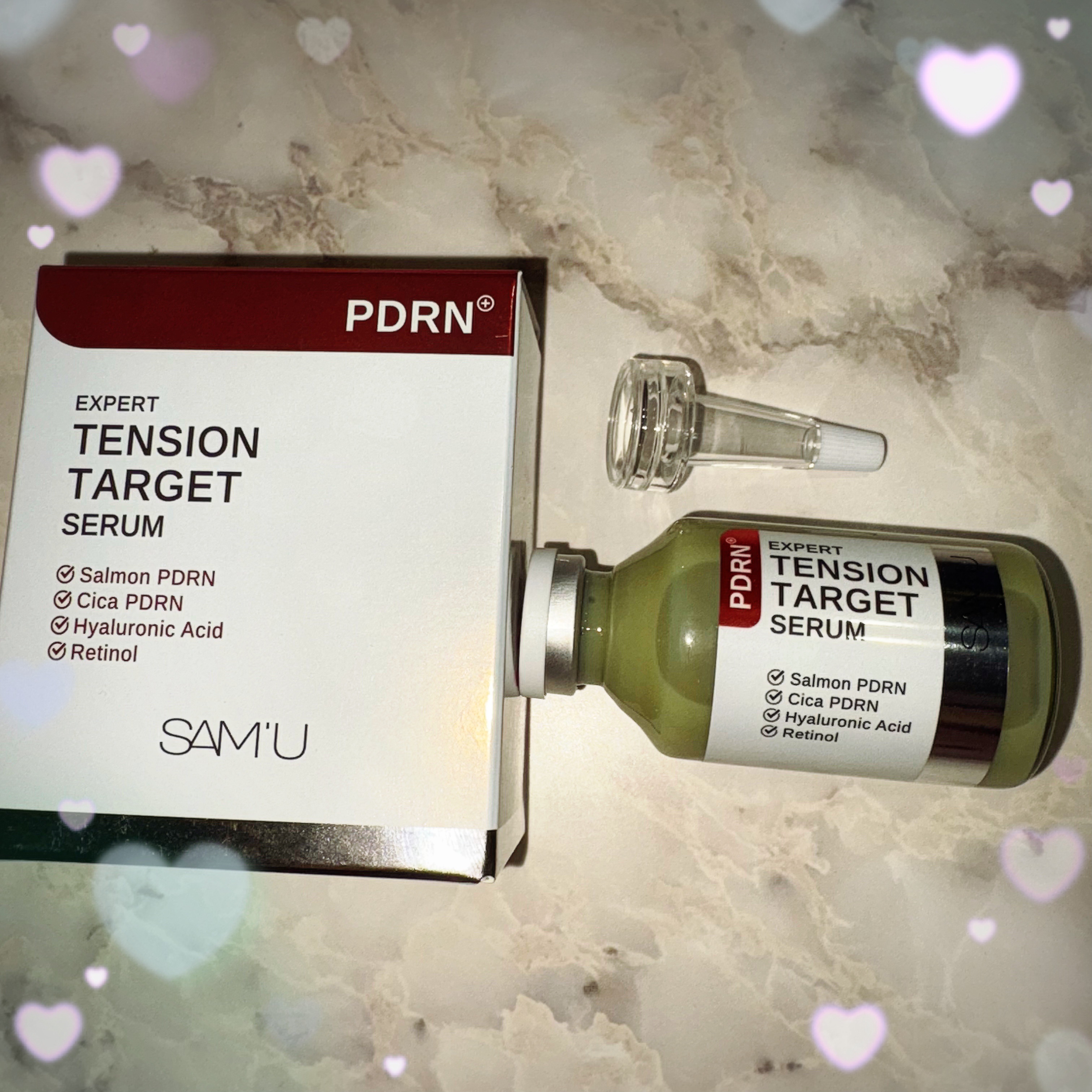 サミュPDRNエキスパートテンションターゲットセラム肌を健やかに整え、引き締まった弾力のある肌印象へ。レチノール配合で肌の密度と弾力をサポートしてくれるんだって。化粧水の後に使用です。アプリケーターのキャップすぐ下のやわらかい部分を押しながら...