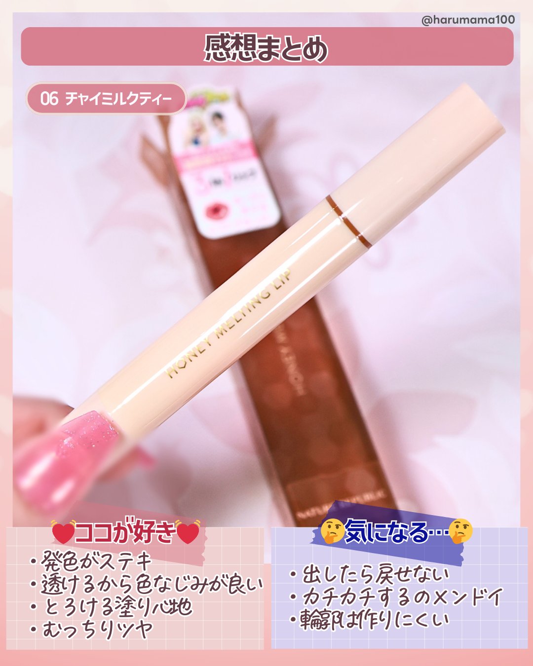 本当にかわいくて蜂蜜みたいなリップですね🍯💛 塗りやすそうで試してみたいです!🥹💖 参考になります!✏📖