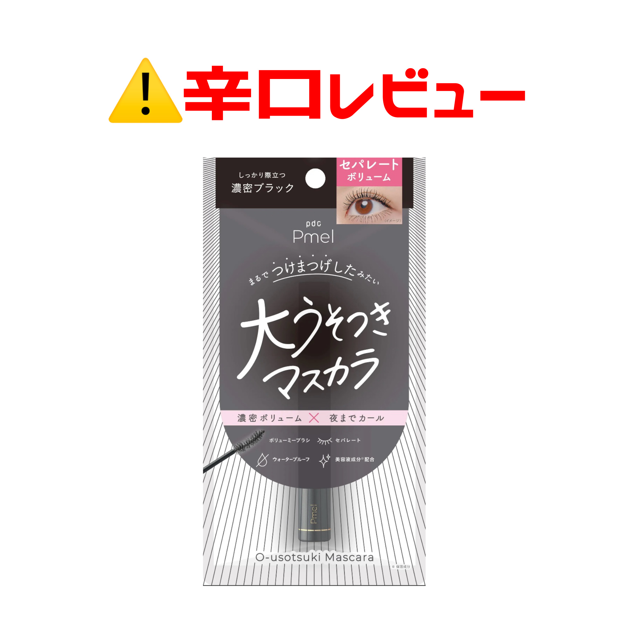 - 【盛れすぎ注意】マスカラ1本で叶える「ボリューム×セパレート」ピメルから“まるでつけま級”の「大うそつきマスカラ」が新登場! ■圧倒的ボリュームで、根元から毛先までしっかり太く 一般的なボリュームマスカラは、「華やかな仕上がり」が魅力である一方で、“重さを感じやすい”や“ダマが気になる”といった声も。 そこでピメルは、既存の「うそつきマスカラ」で好評だった、なめらかな塗り心地を活かし、マスカラ液を調整。 絶妙な粘度とツヤ感を持つ濃密ブラック液がまつ毛1本1本を包み込み、密度の高いまつげを演出。 さらに、重ね塗りするほどにボリュームを自在にコントロールできるので、ボリュームマスカラが苦手な方でも使いやすい処方です。 ■毛足の長いブラシで、ふさふさセパレートを実現 濃密ブラック液の魅力を最大限に引き出すため、毛の密度を高めたロング毛ブラシを採用。 液をたっぷり含ませたブラシが根元からまつげをキャッチし、毛先までとかすように塗れるので、ダマのない繊細なセパレートを叶えます。 まつげ1本1本が際立ち、存在感のある目元に仕上がります。 ■強力カールキープでまつげをロック 速乾×カールロック成分*配合のキープ処方で、塗った瞬間まつげを強力ホールド! 根元からぐっと持ち上げて、ふさふさまつげをがちっとロック。 メイクしたての上向きカールを長時間キープします。 さらに、汗・水に強いウォータープルーフ処方ににじみにくく、美しいボリュームまつげが続きます。 ■マスカラなのにまつげケア、5種の美容液成分(保湿成分)を配合 毎日のメイク時間が、まつげのケアタイムに。 ダメージ補修成分のツバキオイルとパンテノール、保湿成分のヒアルロン酸やシルクエキスなどまつげのことを考えた成分を厳選配合。 塗るたびに、まつげにうるおいを与えます。 *トリメチルシロキシケイ酸、水添ロジン酸グリセリル 2025年10月7日(火) 10:00より公式オンラインショップ、pdc楽天市場にて予約販売