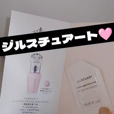 明日発売のジルスチュアート イルミネイティングジェム セラムプライマー 01 lavender gem きらめきもパール感もしっかりあってツヤっとしたベースが仕上がる! ピンク系は血色感もUPするから、仕込みチーク的に重ねて使ったりしても可愛かった!! SPF40/PA+++で、UVカット効果も高く みずみずしく伸びがいいし、透明感のある仕上がりに!!!