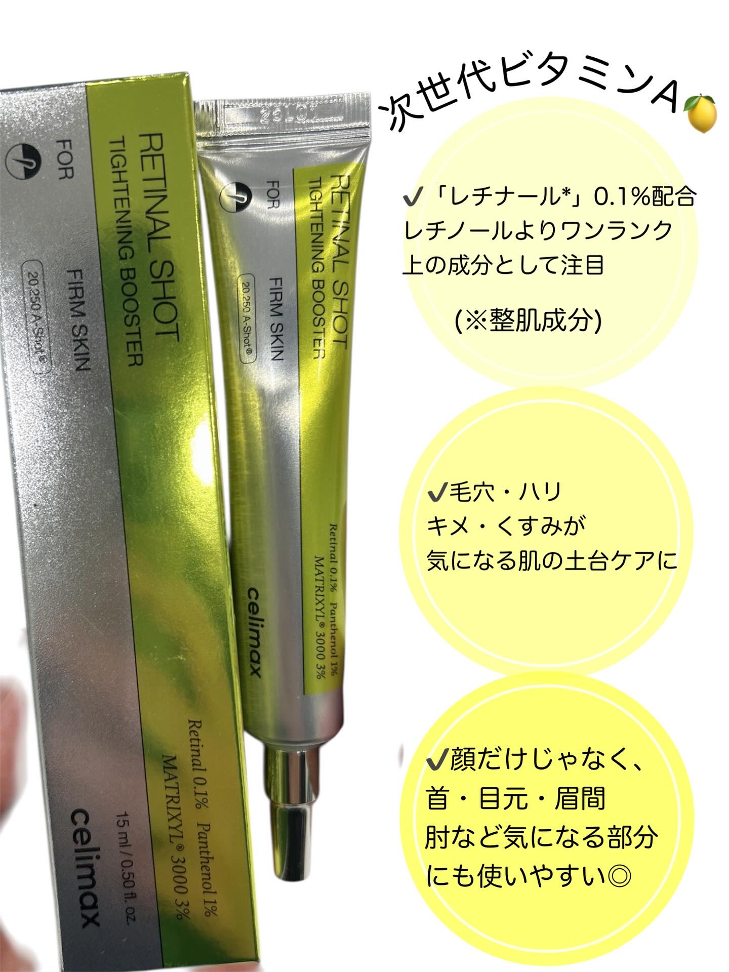 celimaxお守りクリーム♡@celimax.japancelimaxレチナールショットタイトニングブースター15mlこちらは、celimaxの大人気スポットクリーム!次世代ビタミンAレチナール0.1%配合!毛穴より5倍小さいサイズ!毛穴よ...