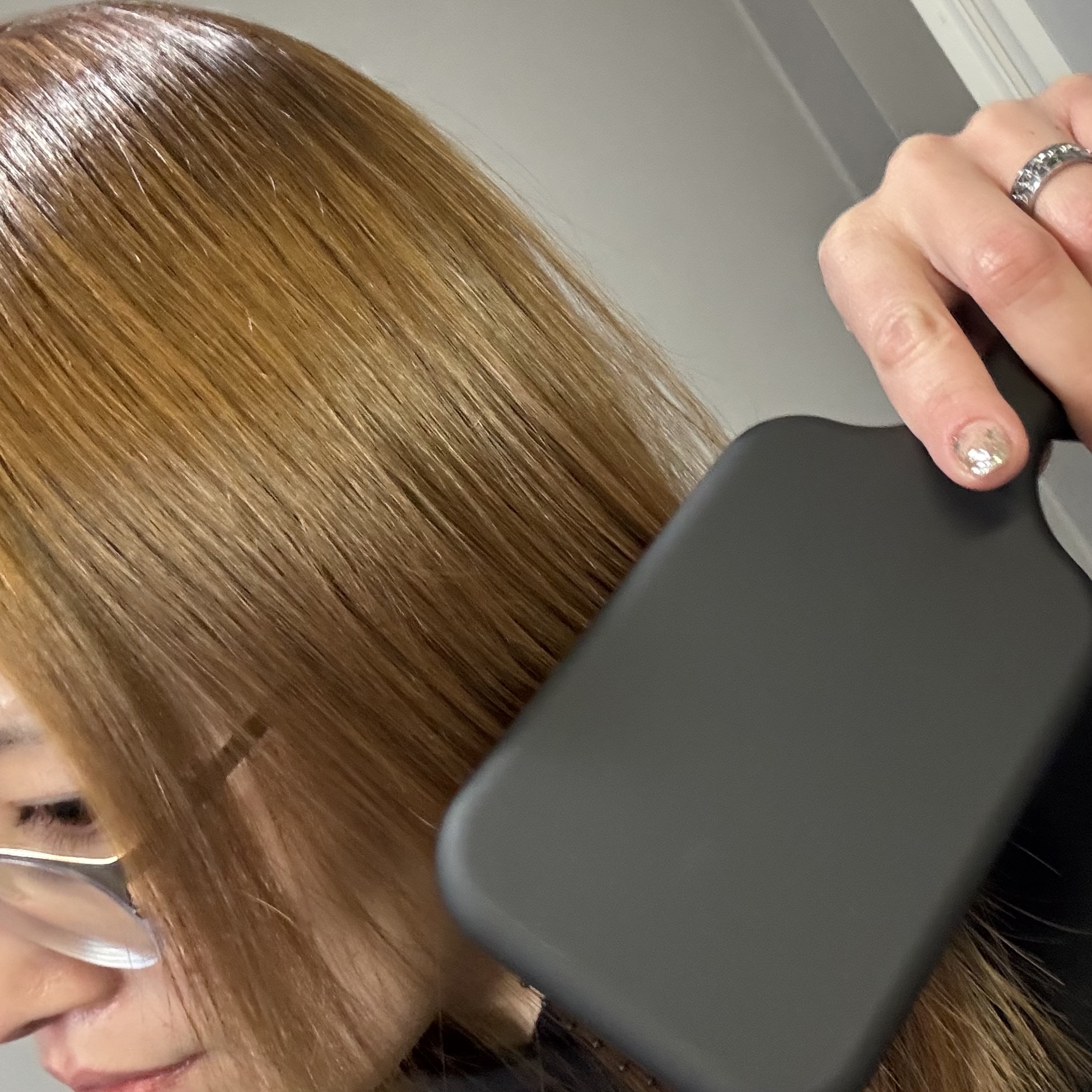 ブラシとコームの良いとこドリで 梳かしつつ上げながら塗れる✨ 手に出したり目で見た時はブルー寄りなんだけど 実際塗ってみるとブルーというよりブラック。 ラメも特に目立たず◎ ブラシが大きめだから慎重に塗らないと△。 あと、結構ダマになった💦