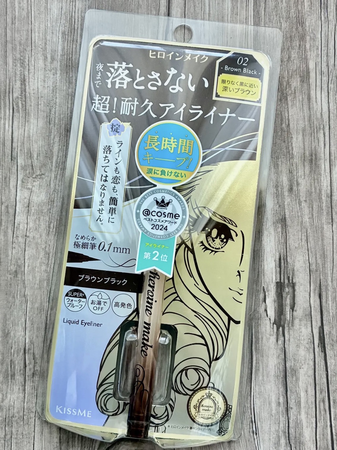 - ヒロイン史上最強※1 夜まで落とさない! 超!耐久リキッドアイライナーが新登場! ■超!耐久 スーパーウォータープルーフ 新耐久性成分と新高密着成分で、ヒロインメイク史上最高※1の耐久性を実現。 涙・汗・皮脂・こすれに強く、1日中※2美しいラインをキープします。 ※1 ヒロインメイク 筆ペンライナー内で。 ※2 日中の活動時間。伊勢半調べ。効果には個人差があります。 ■なめらかな描き心地と高発色 ヒロインメイク初となる新リキッドコントロール機能を採用。 目尻までかすれず、高発色の美しいラインが一気になめらかに描けます。 ■描きやすい!筆先0.1mmの国産極細筆 描きやすさにこだわった、絶妙なコシのある極細筆を採用。 目尻のハネやまつ毛の隙間など、細部まで狙い通りに描けます。 ■染料不使用 染料不使用で肌に色素が残りません。 ■にじまないのにお湯でオフ 高い耐久性でありながら、ぬるま湯で落とせるので日常使いに最適です。 *耐水性が高い処方です。落ちにくく感じる場合は洗顔料(石けん等)をご使用ください。 ■6種類の美容液成分配合 ■抜群の速乾性 速乾性に優れ、メイク中のよれ、にじみに、まばたきにも負けません。