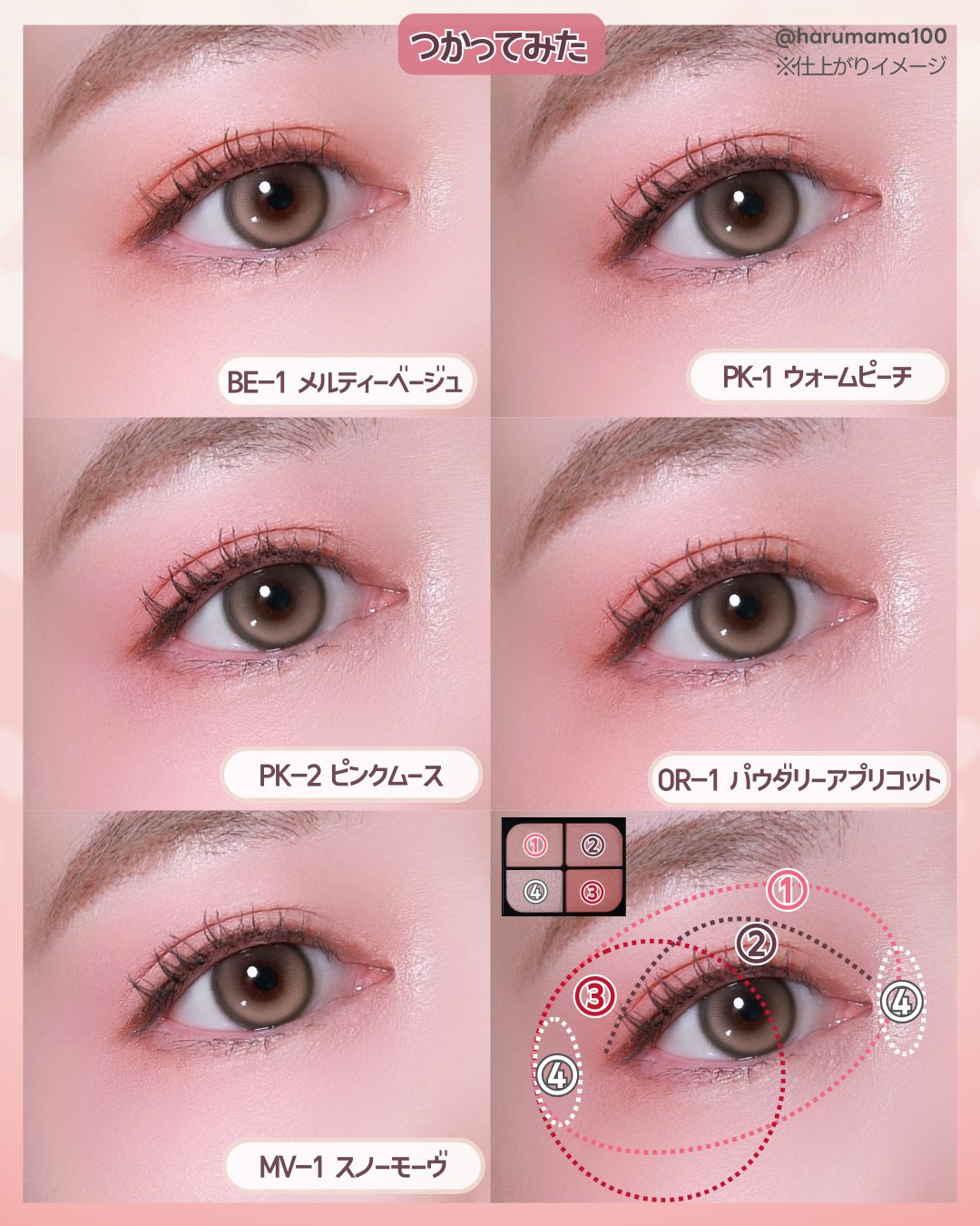 - <BE-1 メルティーベージュ> マイカ、合成フルオロフロゴパイト、ジメチコン、シリカ、ジエチルヘキサン酸ネオペンチルグリコール、ジフェニルシロキシフェニルトリメチコン、イソノナン酸イソトリデシル、ダイマージリノール酸(フィトステリル/イソステアリル/セチル/ステアリル/ベヘニル)、リンゴ酸ジイソステアリル、コーンスターチ、窒化ホウ素、ステアリン酸亜鉛、(ジメチコン/ビニルジメチコン)クロスポリマー、ミリスチン酸Mg、トコフェロール、ミリスチン酸亜鉛、イソステアリン酸ソルビタン、水添ポリイソブテン、エチルパラベン、メチルパラベン、デヒドロ酢酸Na、(+/-)アルミナ、グンジョウ、コンジョウ、パルミチン酸、ラウロイルアスパラギン酸Na、塩化亜鉛、酸化チタン、酸化亜鉛、酸化鉄、水酸化Al、硫酸Ba、トリイソステアリン酸イソプロピルチタン、酸化スズ、ホウケイ酸(Ca/Al)、黄4、赤202、赤226 <MV-1 スノーモーヴ> マイカ、合成フルオロフロゴパイト、ジメチコン、シリカ、ジエチルヘキサン酸ネオペンチルグリコール、ジフェニルシロキシフェニルトリメチコン、イソノナン酸イソトリデシル、ダイマージリノール酸(フィトステリル/イソステアリル/セチル/ステアリル/ベヘニル)、リンゴ酸ジイソステアリル、コーンスターチ、窒化ホウ素、ステアリン酸亜鉛、(ジメチコン/ビニルジメチコン)クロスポリマー、ミリスチン酸Mg、トコフェロール、ミリスチン酸亜鉛、イソステアリン酸ソルビタン、水添ポリイソブテン、エチルパラベン、メチルパラベン、デヒドロ酢酸Na、(+/-)アルミナ、グンジョウ、コンジョウ、パルミチン酸、ラウロイルアスパラギン酸Na、塩化亜鉛、酸化チタン、酸化亜鉛、酸化鉄、水酸化Al、硫酸Ba、トリイソステアリン酸イソプロピルチタン、酸化スズ、ホウケイ酸(Ca/Al)、黄4、赤202、赤226 <OR-1 パウダリーアプリコット> マイカ、合成フルオロフロゴパイト、ジメチコン、シリカ、ジエチルヘキサン酸ネオペンチルグリコール、ジフェニルシロキシフェニルトリメチコン、イソノナン酸イソトリデシル、ダイマージリノール酸(フィトステリル/イソステアリル/セチル/ステアリル/ベヘニル)、リンゴ酸ジイソステアリル、コーンスターチ、窒化ホウ素、ステアリン酸亜鉛、(ジメチコン/ビニルジメチコン)クロスポリマー、ミリスチン酸Mg、トコフェロール、ミリスチン酸亜鉛、イソステアリン酸ソルビタン、水添ポリイソブテン、エチルパラベン、メチルパラベン、デヒドロ酢酸Na、(+/-)アルミナ、グンジョウ、コンジョウ、パルミチン酸、ラウロイルアスパラギン酸Na、塩化亜鉛、酸化チタン、酸化亜鉛、酸化鉄、水酸化Al、硫酸Ba、トリイソステアリン酸イソプロピルチタン、酸化スズ、ホウケイ酸(Ca/Al)、黄4、赤202、赤226 <PK-1 ウォームピーチ> マイカ、合成フルオロフロゴパイト、ジメチコン、シリカ、ジエチルヘキサン酸ネオペンチルグリコール、ジフェニルシロキシフェニルトリメチコン、イソノナン酸イソトリデシル、ダイマージリノール酸(フィトステリル/イソステアリル/セチル/ステアリル/ベヘニル)、リンゴ酸ジイソステアリル、コーンスターチ、窒化ホウ素、ステアリン酸亜鉛、(ジメチコン/ビニルジメチコン)クロスポリマー、ミリスチン酸Mg、トコフェロール、ミリスチン酸亜鉛、イソステアリン酸ソルビタン、水添ポリイソブテン、エチルパラベン、メチルパラベン、デヒドロ酢酸Na、(+/-)アルミナ、グンジョウ、コンジョウ、パルミチン酸、ラウロイルアスパラギン酸Na、塩化亜鉛、酸化チタン、酸化亜鉛、酸化鉄、水酸化Al、硫酸Ba、トリイソステアリン酸イソプロピルチタン、酸化スズ、ホウケイ酸(Ca/Al)、黄4、赤202、赤226 <PK-2 ピンクムース> マイカ、合成フルオロフロゴパイト、ジメチコン、シリカ、ジエチルヘキサン酸ネオペンチルグリコール、ジフェニルシロキシフェニルトリメチコン、イソノナン酸イソトリデシル、ダイマージリノール酸(フィトステリル/イソステアリル/セチル/ステアリル/ベヘニル)、リンゴ酸ジイソステアリル、コーンスターチ、窒化ホウ素、ステアリン酸亜鉛、(ジメチコン/ビニルジメチコン)クロスポリマー、ミリスチン酸Mg、トコフェロール、ミリスチン酸亜鉛、イソステアリン酸ソルビタン、水添ポリイソブテン、エチルパラベン、メチルパラベン、デヒドロ酢酸Na、(+/-)アルミナ、グンジョウ、コンジョウ、パルミチン酸、ラウロイルアスパラギン酸Na、塩化亜鉛、酸化チタン、酸化亜鉛、酸化鉄、水酸化Al、硫酸Ba、トリイソステアリン酸イソプロピルチタン、酸化スズ、ホウケイ酸(Ca/Al)、黄4、赤202、赤226