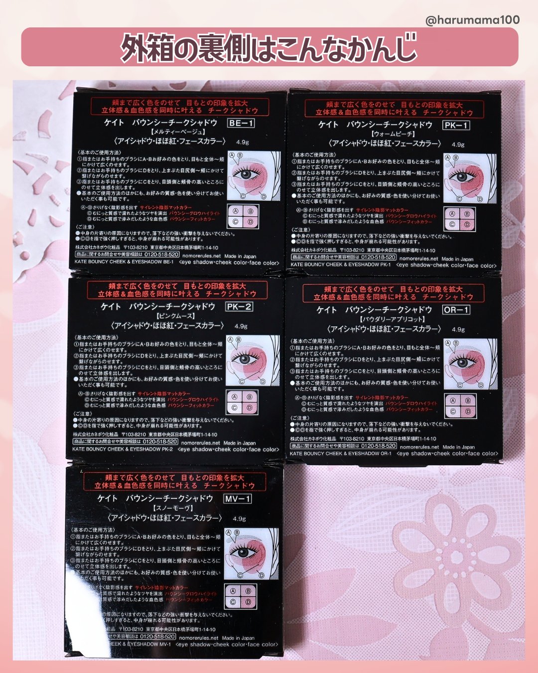 \目もとから頬まで盛れ!/KATEの新作全色レビュー!———-♡——————–♡———KATEバウンシーチークシャドウ1,650円(税込)———-♡——————–♡———KATEの提案するメイクテク毎回すごいよね!!今回は、頬まで色をのせてア...