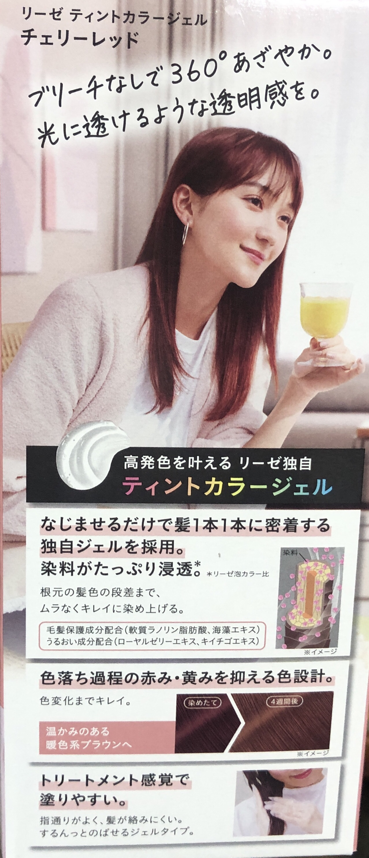 - 【医薬部外品】 ブリーチなしで「透明感」も「濃厚発色」も。 ブリーチなしで360°あざやか、光に透けるような透明感を。 リーゼ独自のティントカラージェルをなじませるだけで髪1本1本に密着、染料がたっぷり浸透*、高発色を叶える。(*リーゼ泡カラー比) 根元の髪色の段差まで、ムラになりにくくきれいに染め上げる。 ●毛髪保護成分配合(軟質ラノリン脂肪酸、海藻エキス) ●うるおい成分配合(ローヤルゼリーエキス、キイチゴエキス) ●色落ち過程の赤み・黄みを抑える色設計。色変化までキレイ ●トリートメント感覚で塗りやすい。指とおりがよく、髪が絡みにくい。するんっとのばせるジェルタイプ。 ●髪の乾燥ダメージに着目したトリートメントケアセット 2回分入り ・【洗い流すタイプ】 アフターカラートリートメント (2包) ・【洗い流さないタイプ】 リペアトリートメントミルク (2包) ●逆さに置けて最後までスムーズに塗れる容器設計