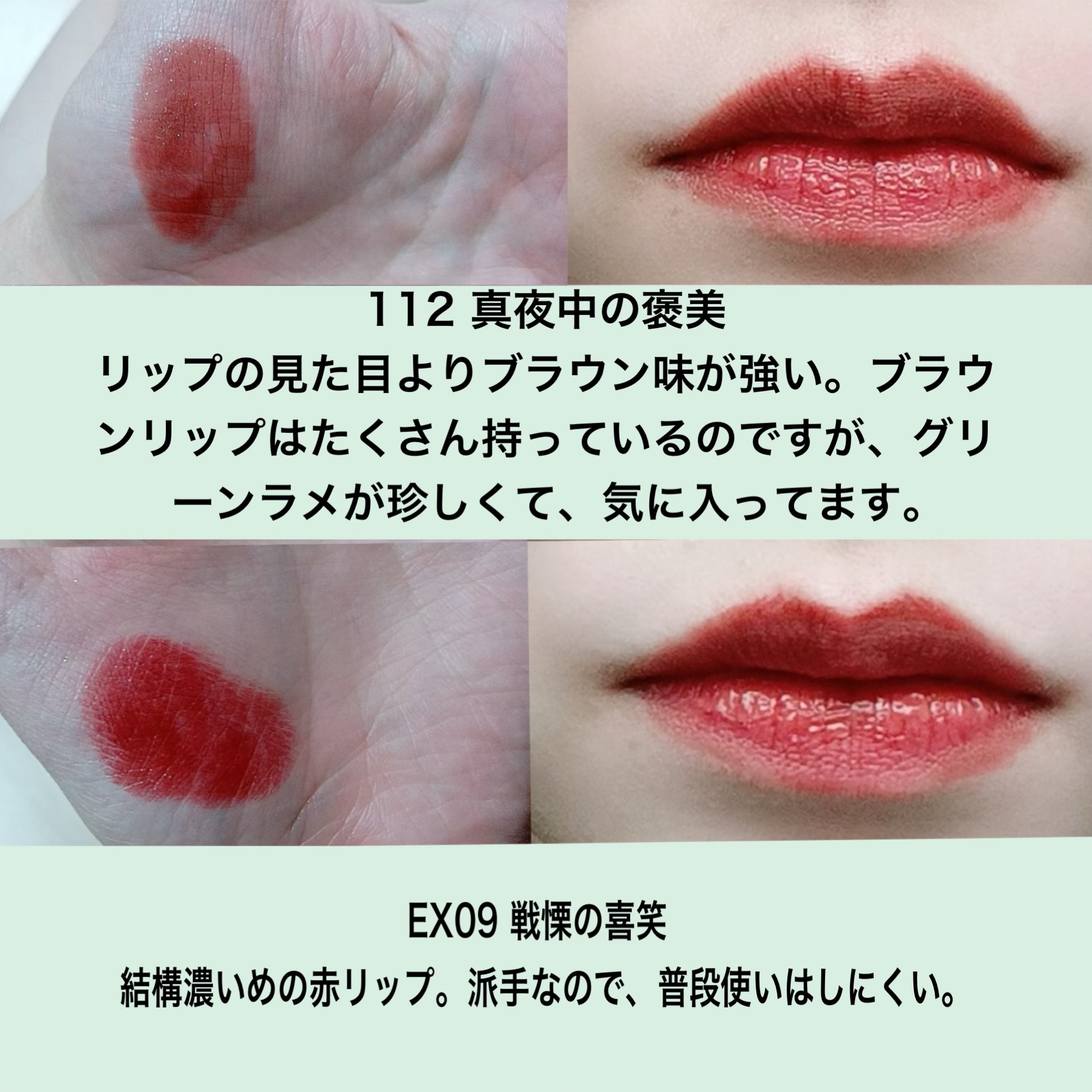 KATEケイトリップモンスター01欲望の塊062:00AM12誓いのルビー112真夜中の褒美 限定色もうちょい欲しい色あるから今後も増える予定だけど、とりあえず4色の手持ち紹介。限定色が発売されるとどこ行っても売り切れてるリプモン。なぁーんで...