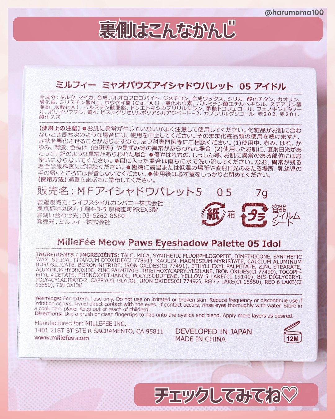 商品詳細情報MilleFée ミャオパウズアイシャドウパレット