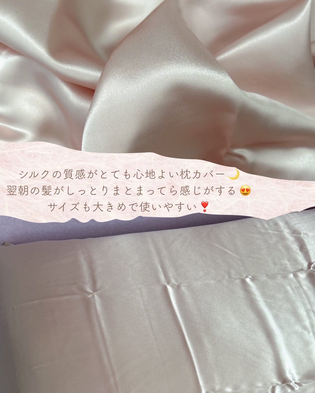 シルク枕カバーを使ってみたよ✨シルク特有のツヤ感で高級感溢れる♥️なめらかさ、軽やかな肌触りで寝心地抜群。なんといっても、髪への睡眠中の摩擦ダメージ軽減されるのか、翌朝のツヤ感とまとまりに感動🥹やっぱりシルクいい✨✨もっと早く使えばよかったー...