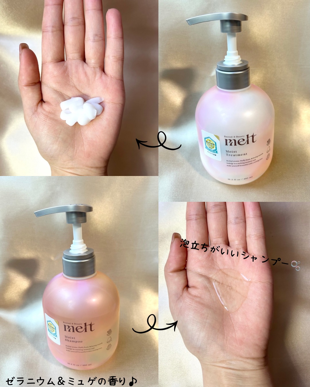 #PR#meltmeltモイストシャンプー&トリートメントを使い始めてみたよ✨コロンとしたパッケージが可愛い🩷泡立ちもなめらかで気持ちよく洗えて、洗い上がりの感触がサラッと柔らか。ドライヤーしてみるとつるっと感✨香りもゼラニウム&ミュゲのふわ...