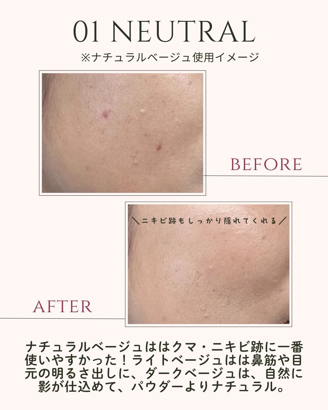 - クマからニキビ跡、シミまでこれ1つでカバー。 3色タイプだからこそ、気になるところや肌色を選ばずにご使用いただけます。 リキッドタイプを圧縮した高濃度バームのため高カバー高密着*¹を実現。 コンシーラーだけでなくコントアとしても使用可能です。 *1メーカー比