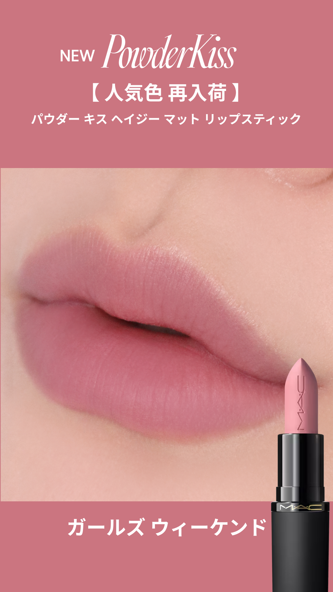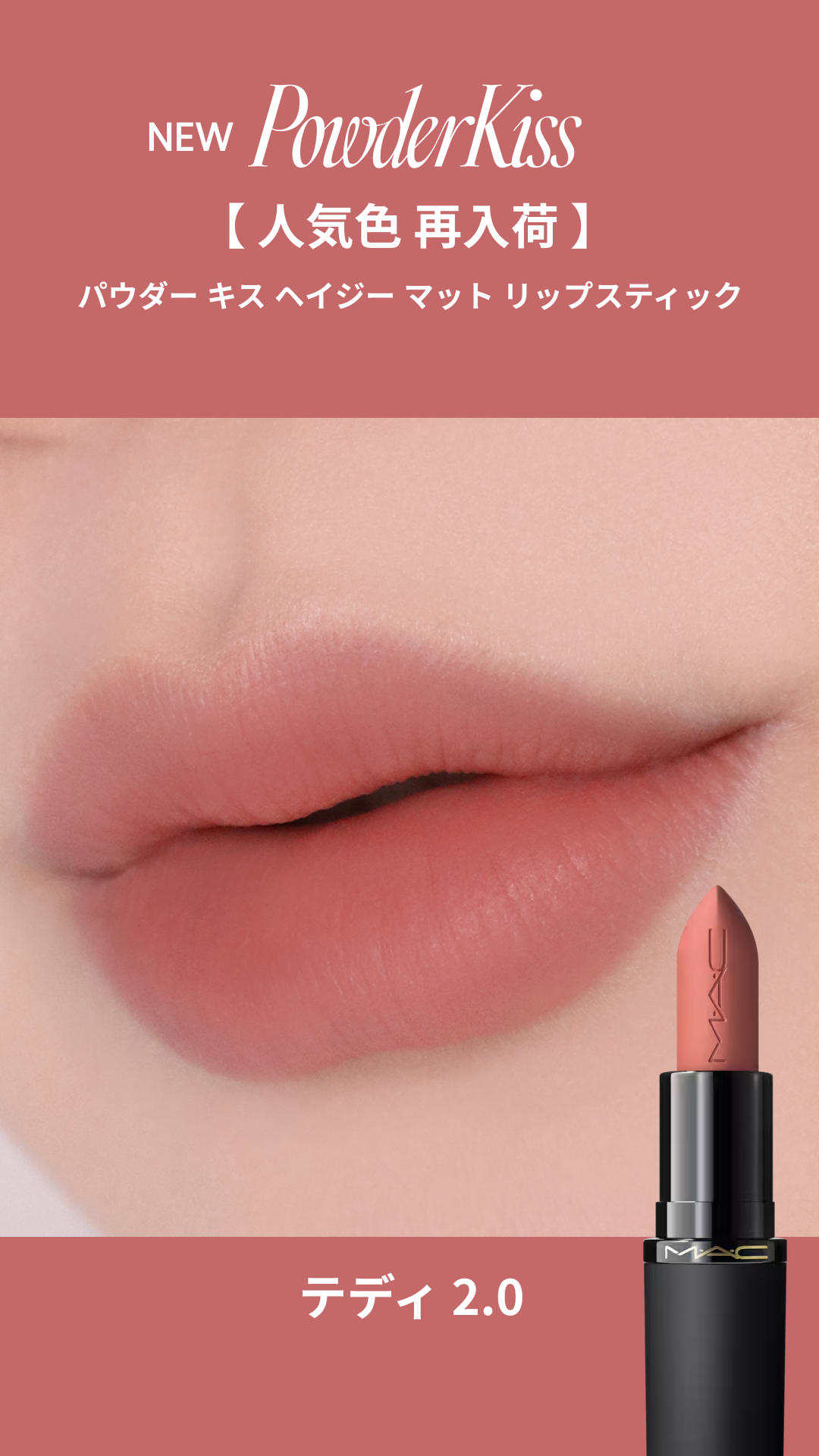 - NEW 新感覚パウダー キスが進化して登場。 “キスの余韻”のように軽く、ふわっと淡く色づく。 ラフにひと塗り、力の抜けた洒落感を叶える。 まるで”キスの余韻”だけを纏うような、そっと触れたように軽く、ふわっと淡い血色感を唇に。 バックステージで、リップとパウダーを重ねる幾つものステップで表現をした儚くてアンニュイなブラー質感。その仕上がりを、日常でも一本で叶えるために生まれたツヤでもない、マットでもないリップカテゴリーの概念を超えた革新的*なブラーリップ。 軽いだけじゃない。パウダリー質感なのに長時間潤い、色持ちも10時間続く**。 ミラーレスでラフにひと塗り、抜け感と洒落感を手に入れる。力を抜いたようなラフさが新しい洗練を叶える1本。 *M・A・C リップ製品の中で **データ取得済み(当社調べ。仕上がりには個人差があります。) ■バーム質感からゼロフィールなパウダリーに変わる新感覚テクスチャー 保湿オイルを含んだソフト フォーカス パウダーが、唇にすべらせた瞬間オイルが弾けバームのようにするする伸びた後、塗っていることを忘れるほどのゼロフィールなパウダリー質感へ変化。保湿しながらも、驚くような軽やかさと心地良さへ進化*。 ■ふわっと淡いブラー仕上がりで、ひと塗りで抜け感と洒落感を ふわっと淡くブラーな仕上がりだから、ミラーレスでラフにひと塗りするだけ。 力を抜いたラフさが今っぽい洗練さを叶える。リップの輪郭をかすませ自然に立体感を引き出すブラー仕上げ。 ■長時間潤い、乾燥を防ぐ** サンゴ草エキス***を新配合。乾燥を防ぎ、縦ジワをカバー。 使うたびに実感する潤いに満たされ続けるような心地よさ。 ■色もち・仕上がり10時間持続** 色移りしにくく、にじみやヨレを防いで、つけたての色と美しさを10時間**キープ。 ■唇になりすますソフトヌードカラー、全24色※ 唇に透けるように溶け込み、洗練オーラを放つM・A・Cならではのヌーディなニュアンスシェード展開。 ※2026年1月9日(金)21色発売、2月25日(水)3色追加発売 *M・A・C リップ製品の中で **データ取得済み(当社調べ。仕上がりには個人差があります。) ***アッケシソウエキス(保湿成分)