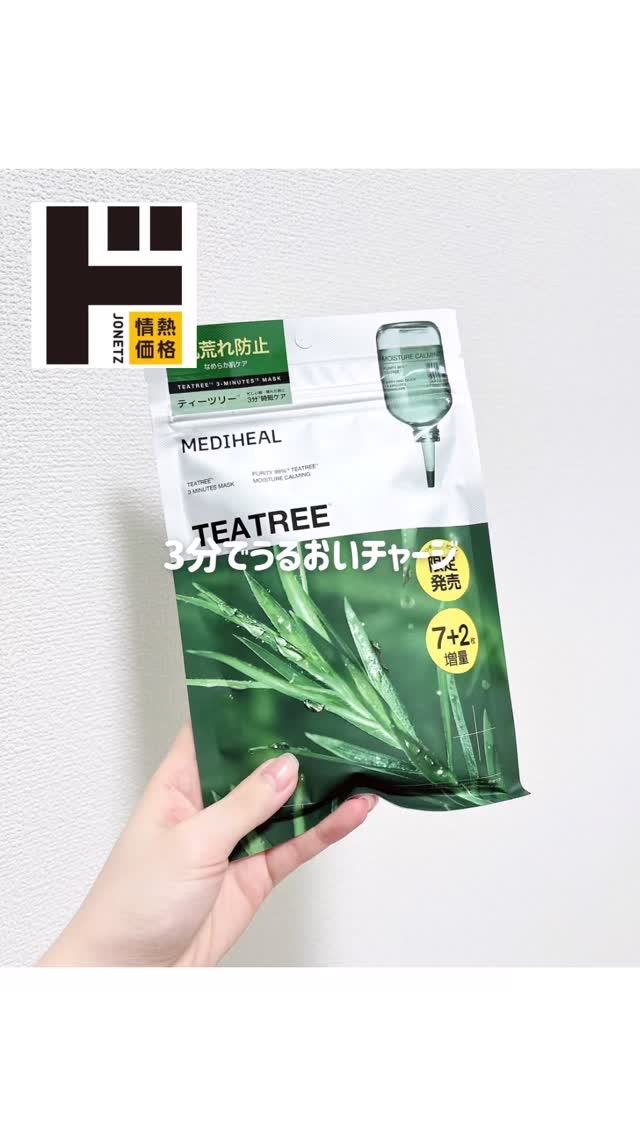 忙しい日の心強い味方🌿MEDIHEALティーツリー3ミニッツマスクドン・キホーテ限定の増量企画が登場。通常よりうれしい9枚入りで毎日使いしやすいのがポイント😎たった3分のケアでも肌にうるおいをしっかり届けてくれる使用感が魅力だよ❤️ティーツリ...
