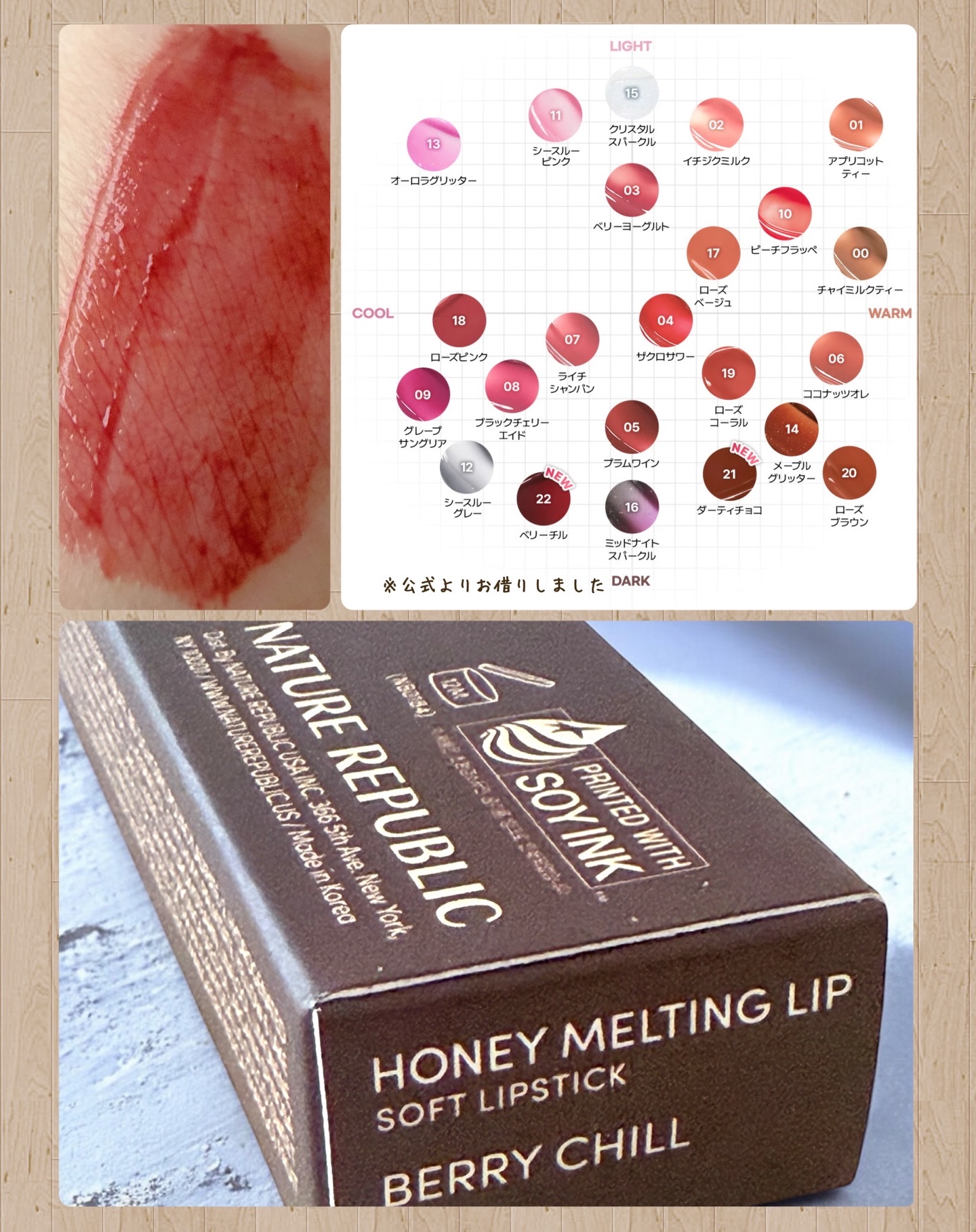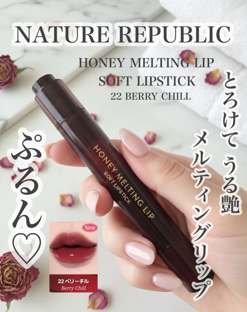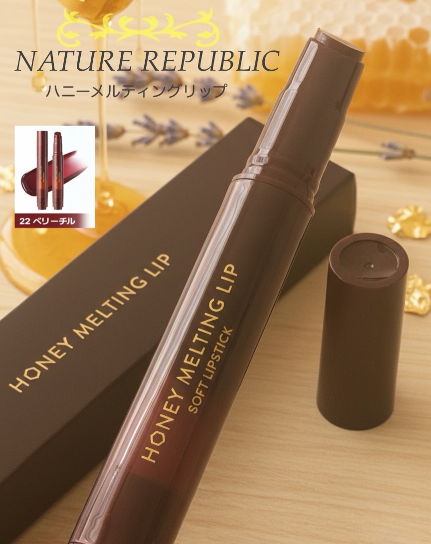 - 韓国では実店舗、オンラインともに完売が続出し、なかなか手に入らないと話題になっている「ハニーメルティングリップ」。 ルージュのように発色し、リッププランパーをつけたかのようなボリューム感を出すことができるリップです。 ハチミツエキス、バラエキス(*)、8種の天然由来オイル(*1)が配合されており、リップオイル効果で韓国アイドル風のあどけない唇を演出できます。 高発色なのにとろける“むっちり唇” 3in1〚ルージュ/高発色〛〚むっちりプランパー/立体感〛〚リップオイル/高保湿〛いいトコ取りの欲張りリップで韓国アイドル風のあどけないぷるぷるリップに演出! *センチフォリアバラ花エキス *1.アーモンド油、アルガニアスピノサ核油、アンズ核油、オリーブ果実油、シア脂、ツバキ種子油、ホホバ種子油、月見草油 (*ー*1.全て保湿成分) 2023年11⽉13⽇(月):ネイチャーリパブリック公式サイト 12月8日(金):全国のバラエティショップ、マツモトキヨシグループ、ココカラファイングループ、ドン・キホーテにて順次発売