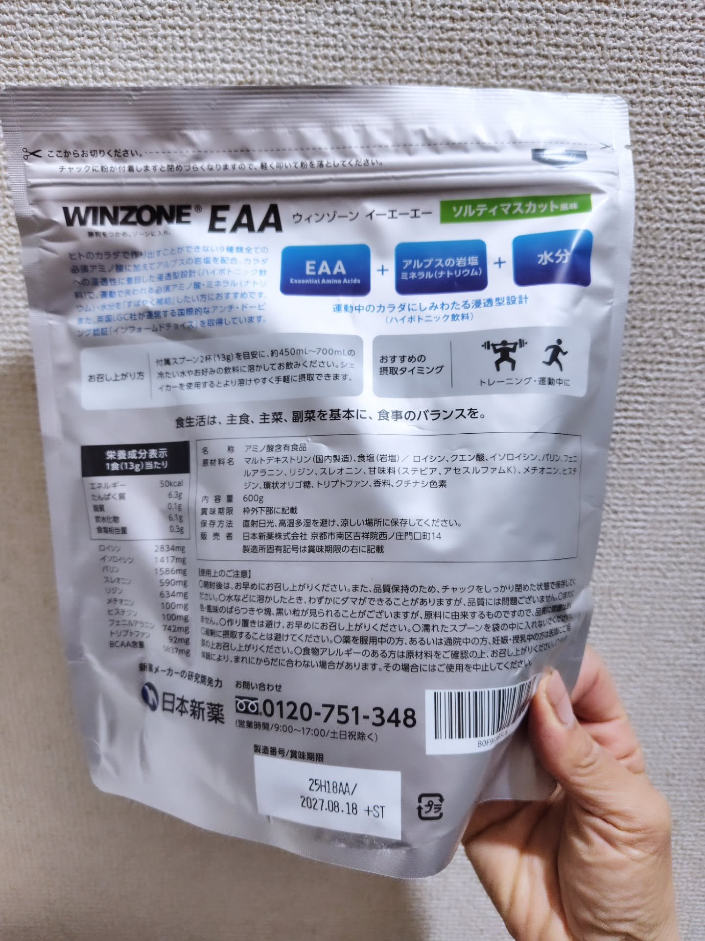 .運動中の水分補給にはじめてEAAを取り入れてみました💭正直、EAAって「苦そう」「飲みにくそう」なイメージがあったけどこれはいい意味で裏切られた…🫣✨ソルティマスカット風味で、ほんのり塩味があってスポーツドリンクみたいにゴクゴク飲める🍃後味...