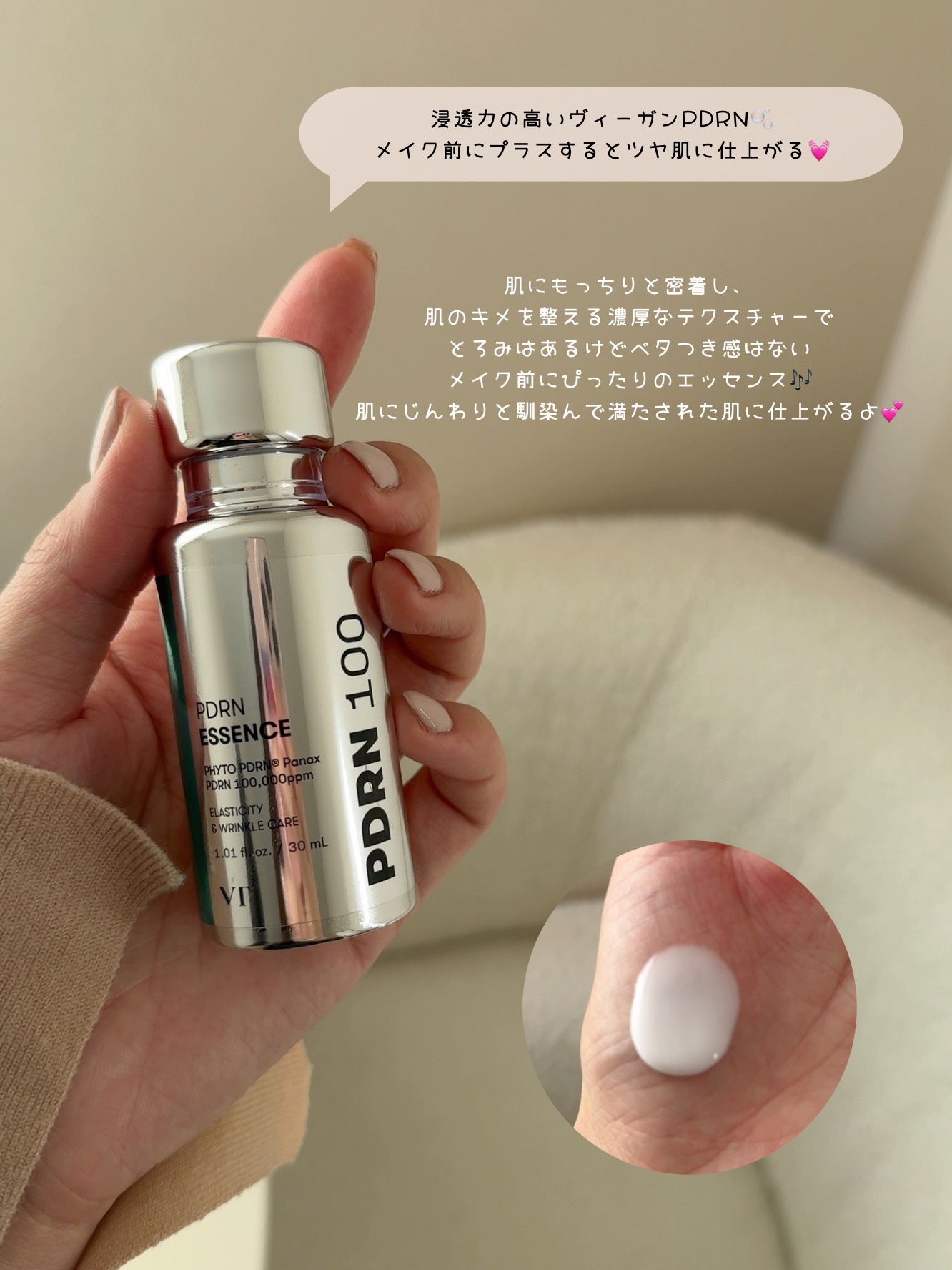 ライン使いした翌朝お肌もっちりすべすべ!見て全然違うって感じじゃなくて手触りで実感する感じ。 セラムとマスクをライン使いすることで自宅でも高級エステ級ケアが実現するそう。 浸透力に特化したPDRN+™セラムで、ハリとツヤをサポート。
