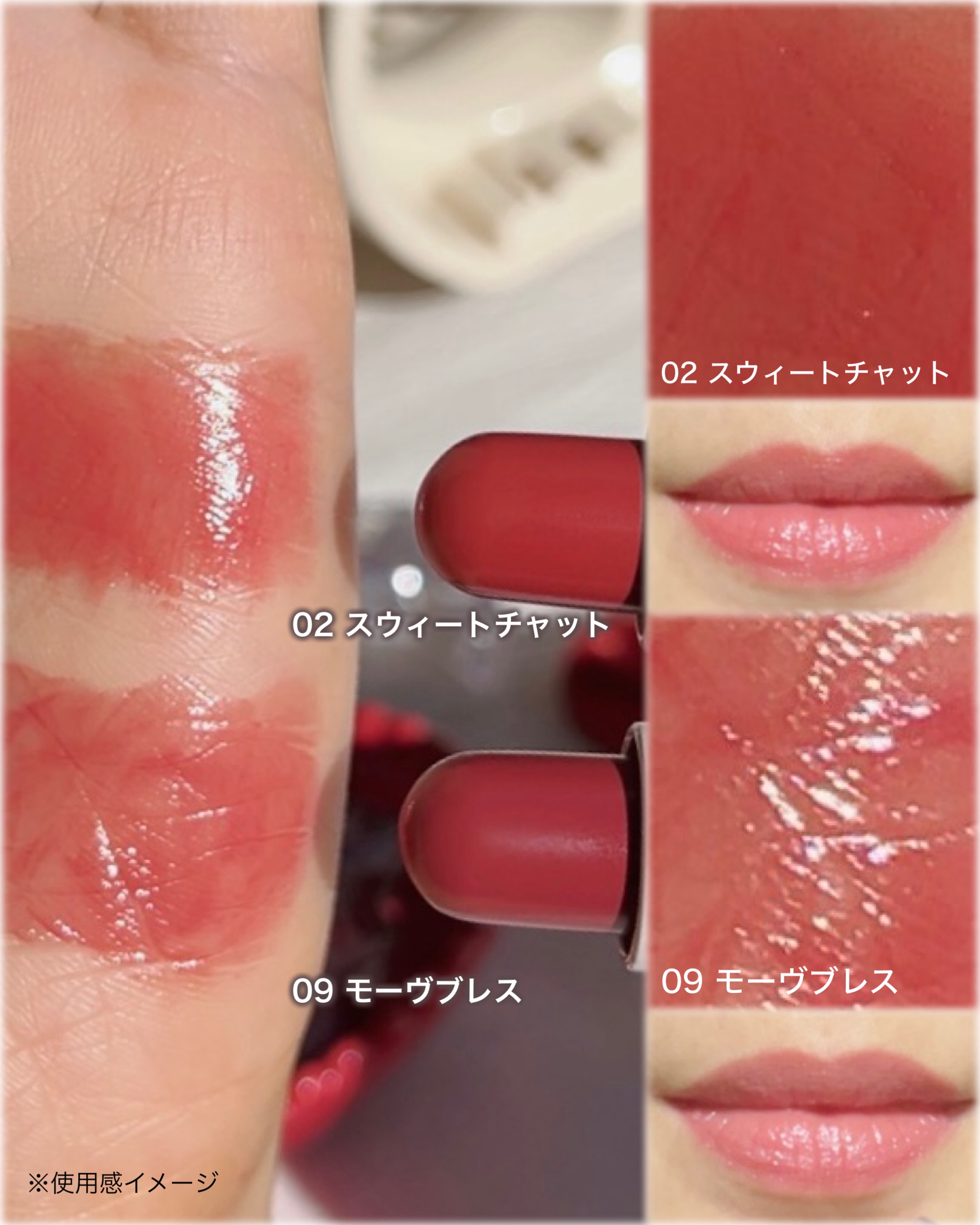 - <01 シャワーピーチ> リンゴ酸ジイソステアリル、オクチルドデカノール、トリ(カプリル酸/カプリン酸)グリセリル、トリメリト酸トリトリデシル、合成ワックス、ペンタイソステアリン酸ジペンタエリスリチル、ジイソステアリン酸ポリグリセリル-3、水添ポリイソブテン、マイクロクリスタリンワックス、ステアロイルオキシステアリン酸オクチルドデシル、酸化チタン、トリイソステアリン酸ポリグリセリル-2、シリカ、(VP/エイコセン)コポリマー、パラフィン、(ラズベリー種子油/コハク酸トコフェロール)アミノプロパンジオールエステルズ、イソステアリン酸ソルビタン、黄4、トリ酢酸テトラステアリン酸スクロース、(セバシン酸/イソパルミチン酸)ジグリセリル、酸化鉄、ポリヒドロキシステアリン酸、赤104(1)、ジステアルジモニウムヘクトライト、レシチン、赤202、ジイソステアリン酸ポリグリセリル-2、イソステアリン酸、パルミチン酸エチルヘキシル、ミリスチン酸イソプロピル、香料、青1、ポリリシノレイン酸ポリグリセリル-3、炭酸プロピレン、カプリリルグリコール、カプリル酸グリセリル、トコフェロール <02 スウィートチャット> リンゴ酸ジイソステアリル、オクチルドデカノール、トリ(カプリル酸/カプリン酸)グリセリル、トリメリト酸トリトリデシル、合成ワックス、ペンタイソステアリン酸ジペンタエリスリチル、ジイソステアリン酸ポリグリセリル-3、水添ポリイソブテン、マイクロクリスタリンワックス、ステアロイルオキシステアリン酸オクチルドデシル、酸化チタン、シリカ、トリイソステアリン酸ポリグリセリル-2、(VP/エイコセン)コポリマー、パラフィン、酸化鉄、(ラズベリー種子油/コハク酸トコフェロール)アミノプロパンジオールエステルズ、イソステアリン酸ソルビタン、トリ酢酸テトラステアリン酸スクロース、(セバシン酸/イソパルミチン酸)ジグリセリル、ポリヒドロキシステアリン酸、赤201、赤104(1)、ジステアルジモニウムヘクトライト、レシチン、赤202、ジイソステアリン酸ポリグリセリル-2、イソステアリン酸、パルミチン酸エチルヘキシル、ミリスチン酸イソプロピル、香料、ポリリシノレイン酸ポリグリセリル-3、炭酸プロピレン、カプリリルグリコール、カプリル酸グリセリル、トコフェロール <03 アップルフィズ> リンゴ酸ジイソステアリル、オクチルドデカノール、トリ(カプリル酸/カプリン酸)グリセリル、トリメリト酸トリトリデシル、トリイソステアリン酸ポリグリセリル-2、合成ワックス、ペンタイソステアリン酸ジペンタエリスリチル、ジイソステアリン酸ポリグリセリル-3、水添ポリイソブテン、マイクロクリスタリンワックス、ステアロイルオキシステアリン酸オクチルドデシル、シリカ、(VP/エイコセン)コポリマー、パラフィン、(ラズベリー種子油/コハク酸トコフェロール)アミノプロパンジオールエステルズ、赤104(1)、イソステアリン酸ソルビタン、トリ酢酸テトラステアリン酸スクロース、(セバシン酸/イソパルミチン酸)ジグリセリル、黄5、黄4、ジイソステアリン酸ポリグリセリル-2、ポリヒドロキシステアリン酸、赤202、赤201、ジステアルジモニウムヘクトライト、レシチン、イソステアリン酸、パルミチン酸エチルヘキシル、ミリスチン酸イソプロピル、香料、ポリリシノレイン酸ポリグリセリル-3、青1、炭酸プロピレン、カプリリルグリコール、カプリル酸グリセリル、トコフェロール <04 ヌードアーモンド> リンゴ酸ジイソステアリル、オクチルドデカノール、トリ(カプリル酸/カプリン酸)グリセリル、トリメリト酸トリトリデシル、合成ワックス、ペンタイソステアリン酸ジペンタエリスリチル、トリイソステアリン酸ポリグリセリル-2、ジイソステアリン酸ポリグリセリル-3、水添ポリイソブテン、マイクロクリスタリンワックス、ステアロイルオキシステアリン酸オクチルドデシル、シリカ、酸化鉄、(VP/エイコセン)コポリマー、パラフィン、(ラズベリー種子油/コハク酸トコフェロール)アミノプロパンジオールエステルズ、イソステアリン酸ソルビタン、トリ酢酸テトラステアリン酸スクロース、(セバシン酸/イソパルミチン酸)ジグリセリル、酸化チタン、ポリヒドロキシステアリン酸、赤202、ジステアルジモニウムヘクトライト、レシチン、ジイソステアリン酸ポリグリセリル-2、青1、イソステアリン酸、パルミチン酸エチルヘキシル、ミリスチン酸イソプロピル、香料、ポリリシノレイン酸ポリグリセリル-3、炭酸プロピレン、カプリリルグリコール、カプリル酸グリセリル、トコフェロール <05 ロージーナップ> リンゴ酸ジイソステアリル、オクチルドデカノール、トリ(カプリル酸/カプリン酸)グリセリル、トリメリト酸トリトリデシル、合成ワックス、ペンタイソステアリン酸ジペンタエリスリチル、ジイソステアリン酸ポリグリセリル-3、水添ポリイソブテン、マイクロクリスタリンワックス、ステアロイルオキシステアリン酸オクチ