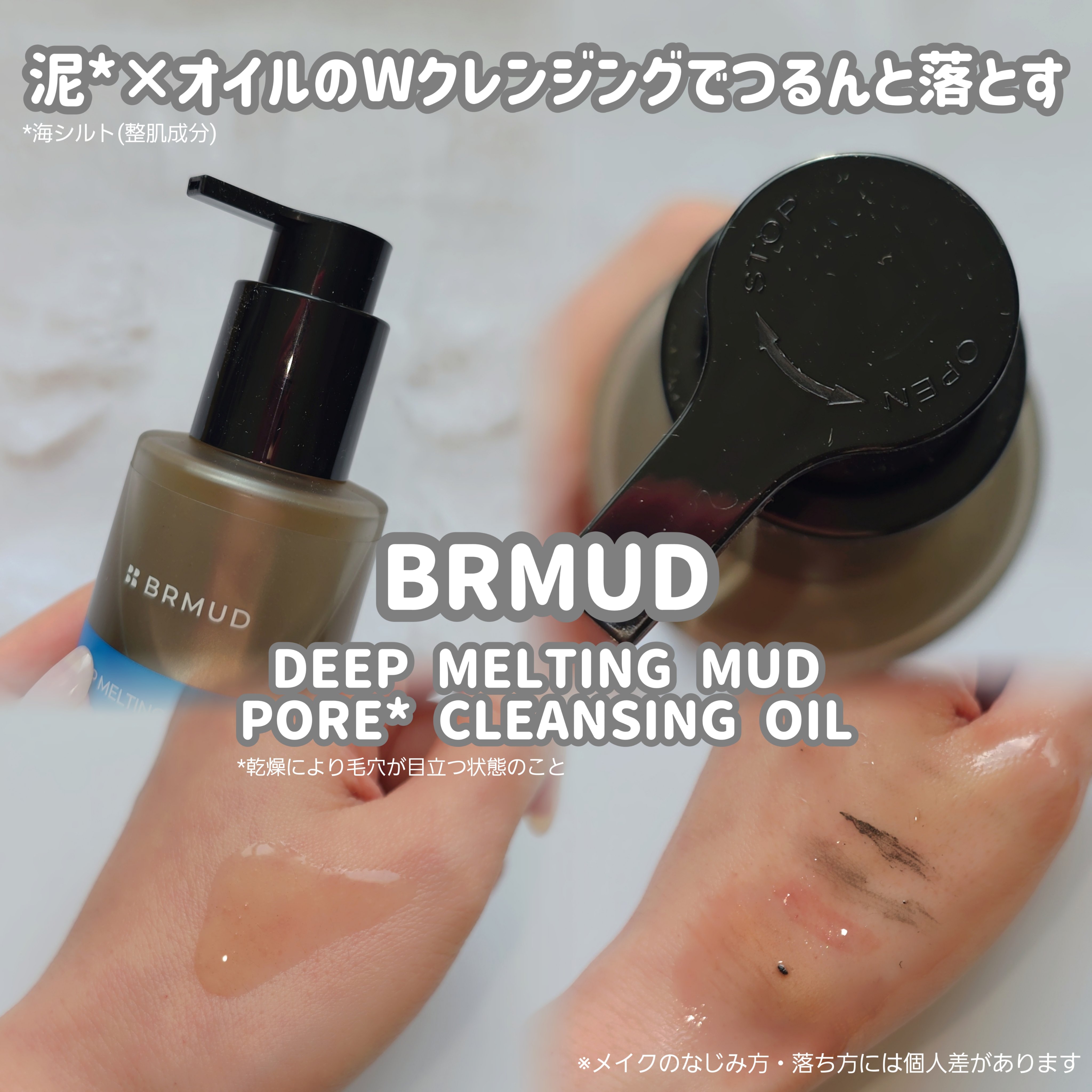 #PR#brmud韓国初!泥クレンジングオイル🫧BRMUDディープメルティングマッドポアクレンジングオイル♩細かいマッドパウダーが皮脂をしっかり吸着◎とろっと厚みのあるテクスチャーだから摩擦レスでメイクをやさしくオフ。7種の天然発酵オイル配合...