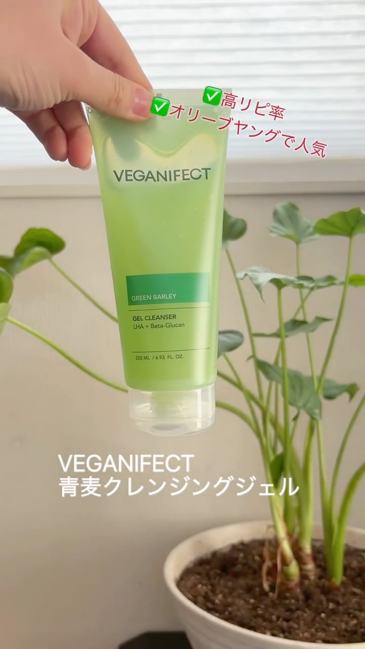 Veganifect\青麦クレンジングジェル/リニューアルして容器がチューブになって使いやすくなったよ!ヴィーガンなのも嬉しいポイントだよね♪ざらつきやブラックヘッド、毛穴ケアにもオススメ🫶泡立ちもよく突っ張らない仕上り♡ちゅるん肌へ🩷オリー...