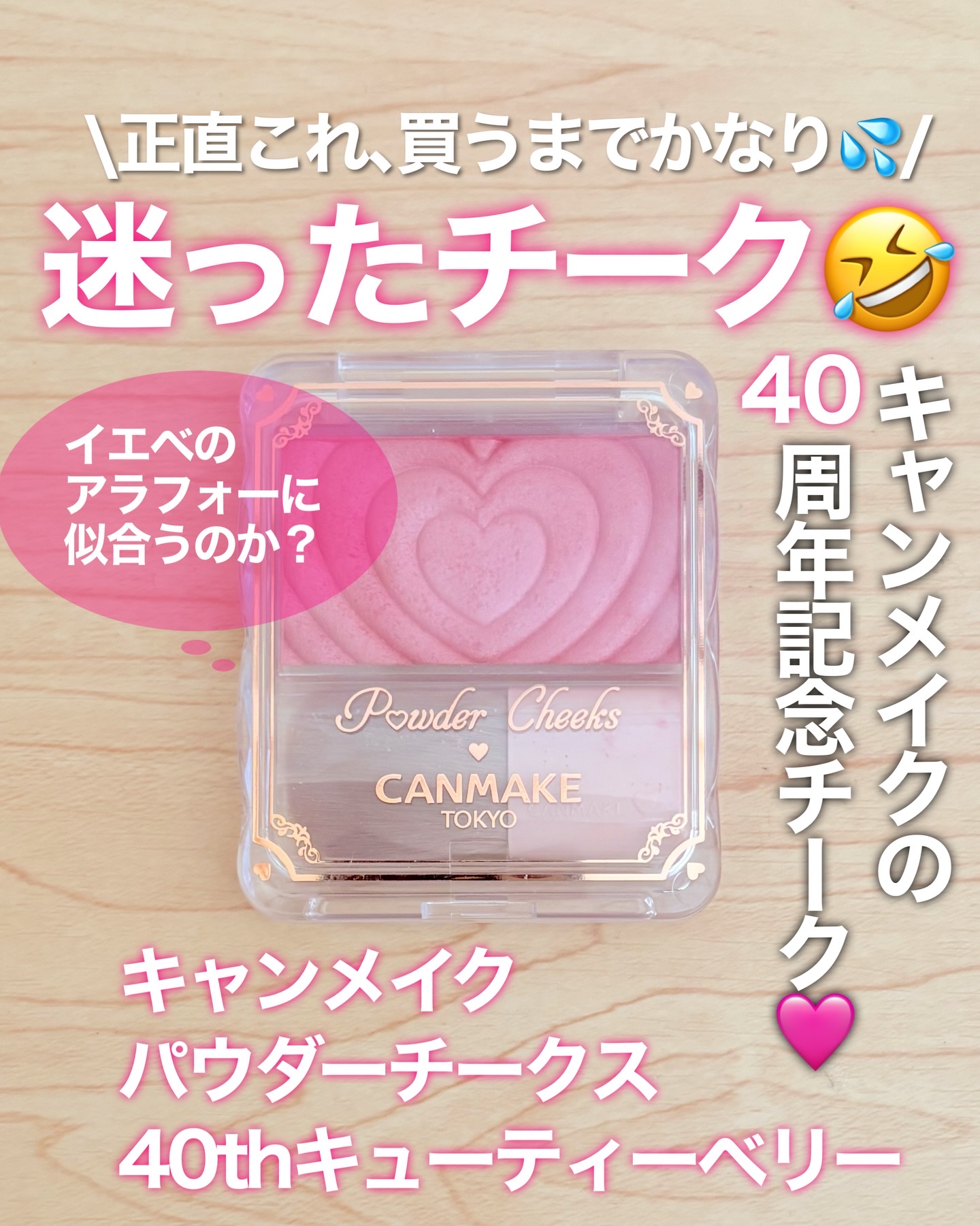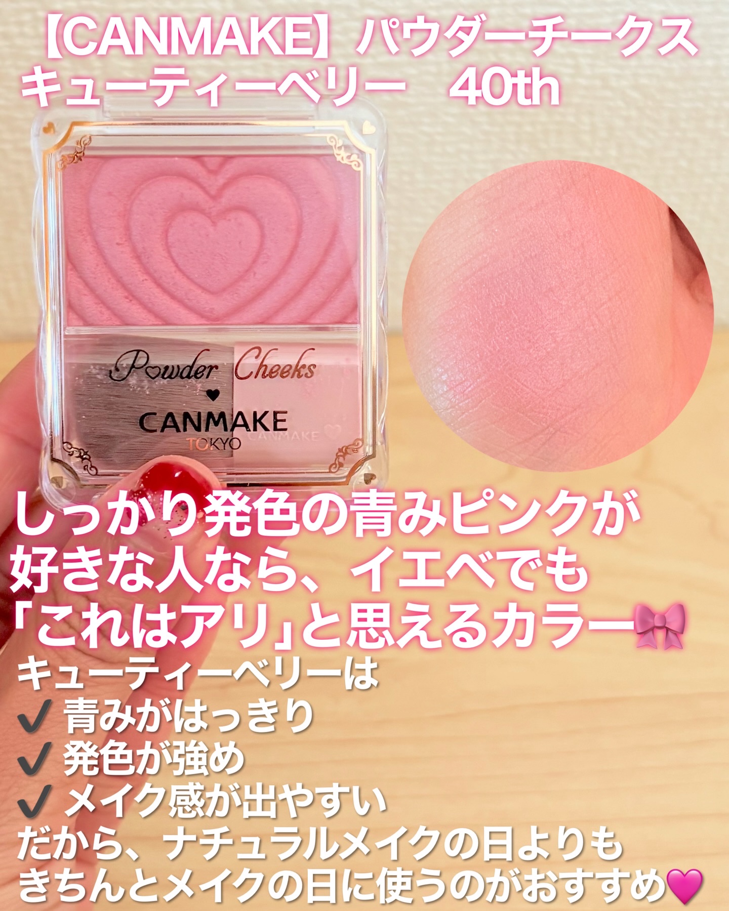 「キャンメイク」さまから商品提供をいただきました。キャンメイクパウダーチークスP40thxキューティーベリー【💗40周年記念カラー💗】公式SNSや店頭で皆んなが投票したカラーと色名で決まったパウダーチークス🎀🪄【🍓pickup】☑︎しっとり溶...