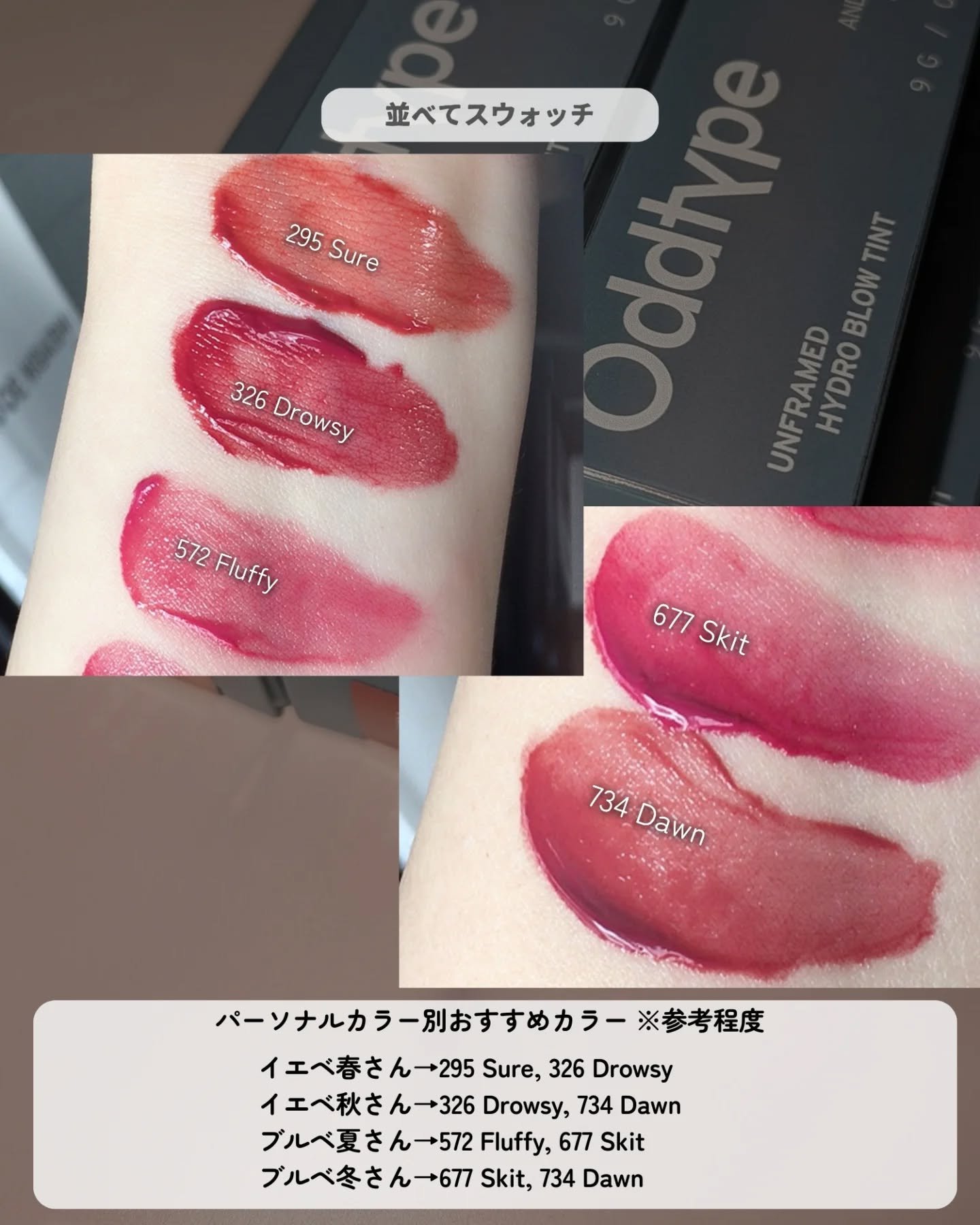 _@oddtype_jp水分をまとったみたいなツヤと透け感。꒰アンフレームドハイドロブロウティントリップスティックみたいになめらかに塗れて、しっとりした透明感ツヤが続くハイドロティント👄唇にぴたっと密着するみずみずしいテクスチャーと、...