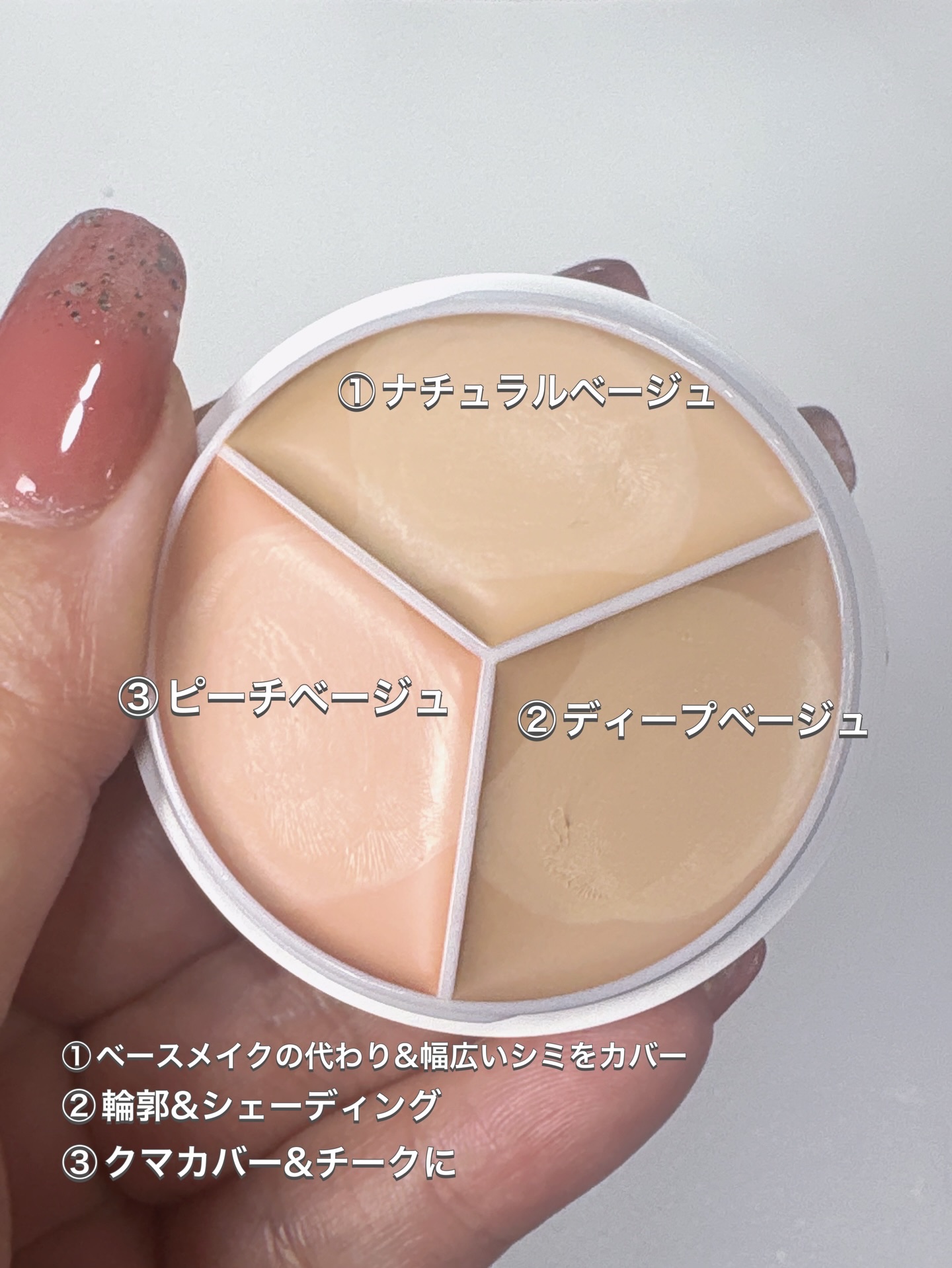 - クマからニキビ跡、シミまでこれ1つでカバー。 3色タイプだからこそ、気になるところや肌色を選ばずにご使用いただけます。 リキッドタイプを圧縮した高濃度バームのため高カバー高密着*¹を実現。 コンシーラーだけでなくコントアとしても使用可能です。 *1メーカー比