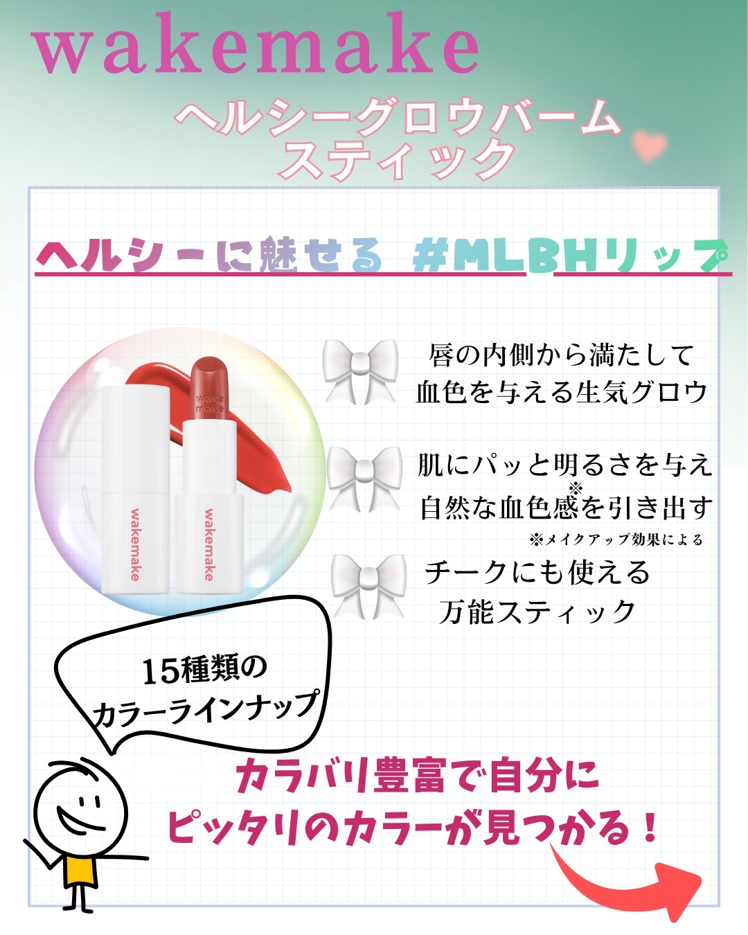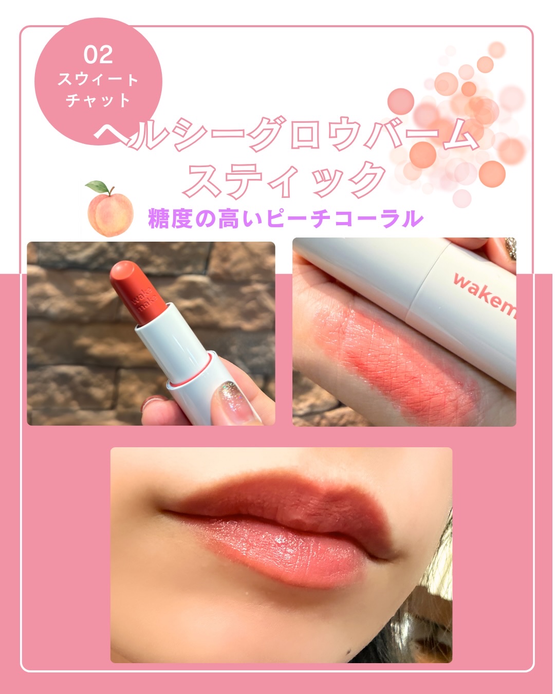 wakemakeHEALTHYGLOWBALMSTICK02スウィートチャット09モーヴブレスwakemakeは4月末からリブランディングしてロゴが小文字に!パケも可愛い🤍Amazon・全国バラショ(一部店舗除く)で販売中!唇がキレイに見える...