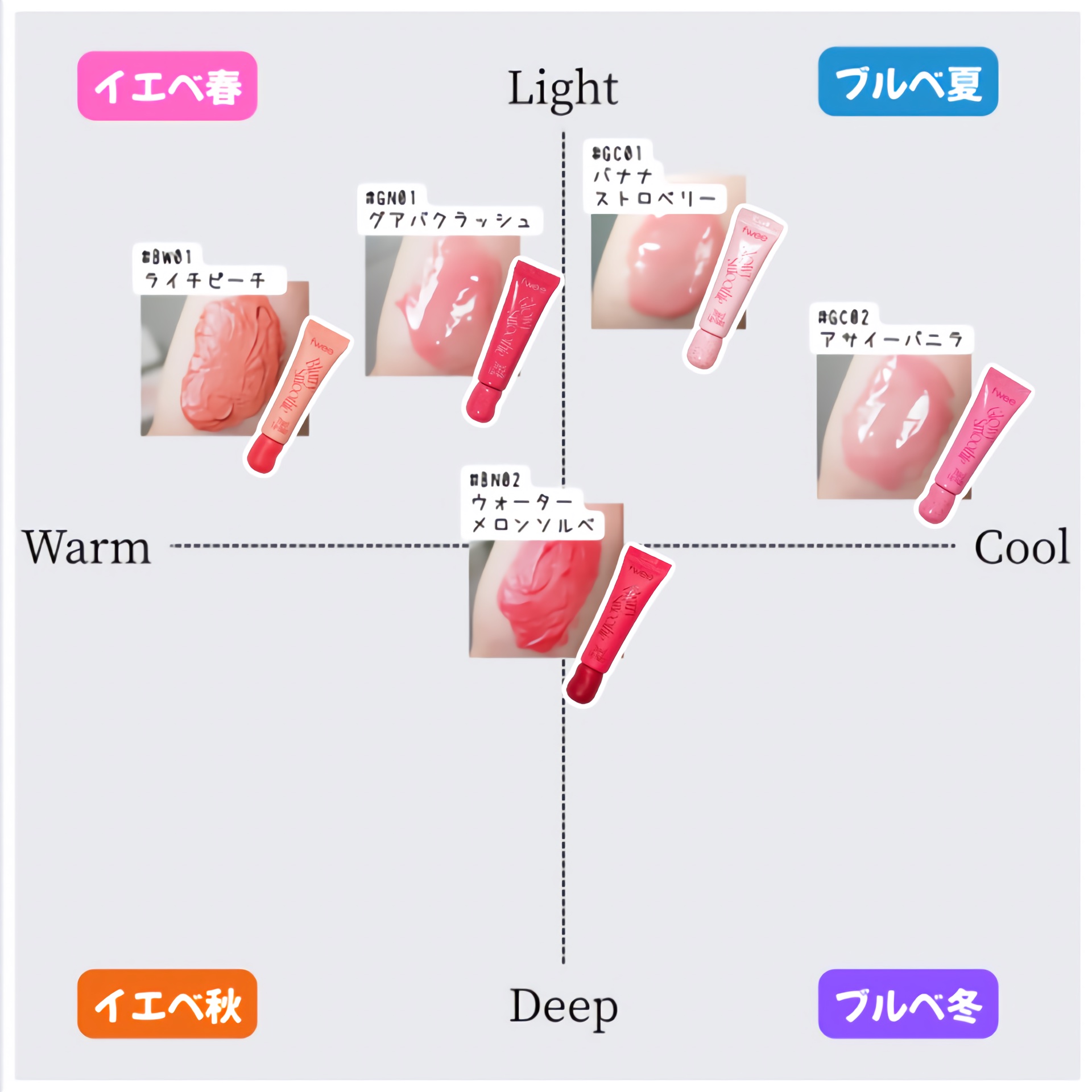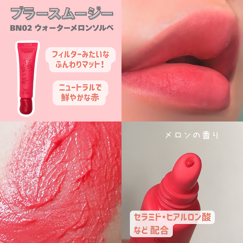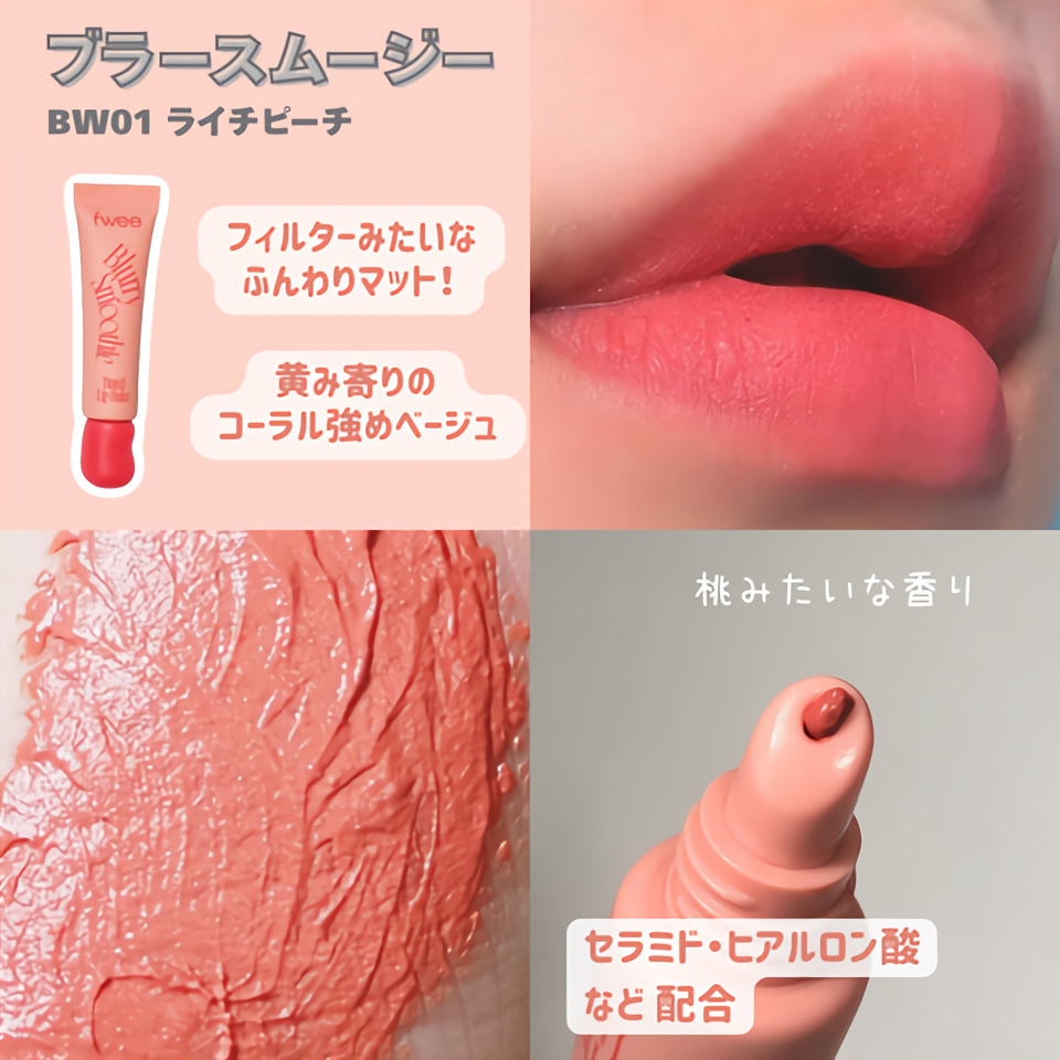2/1発売❕fweeスムージーリップバームイエベおすすめカラー2選✨fweeさまからのギフティングです💛🩷BW01ライチピーチ💚01アボカドココナッツ→BWはなめらかでふんわりしたマットなテクスチャで、単体で使ってももちろん可愛いけどアボカド...