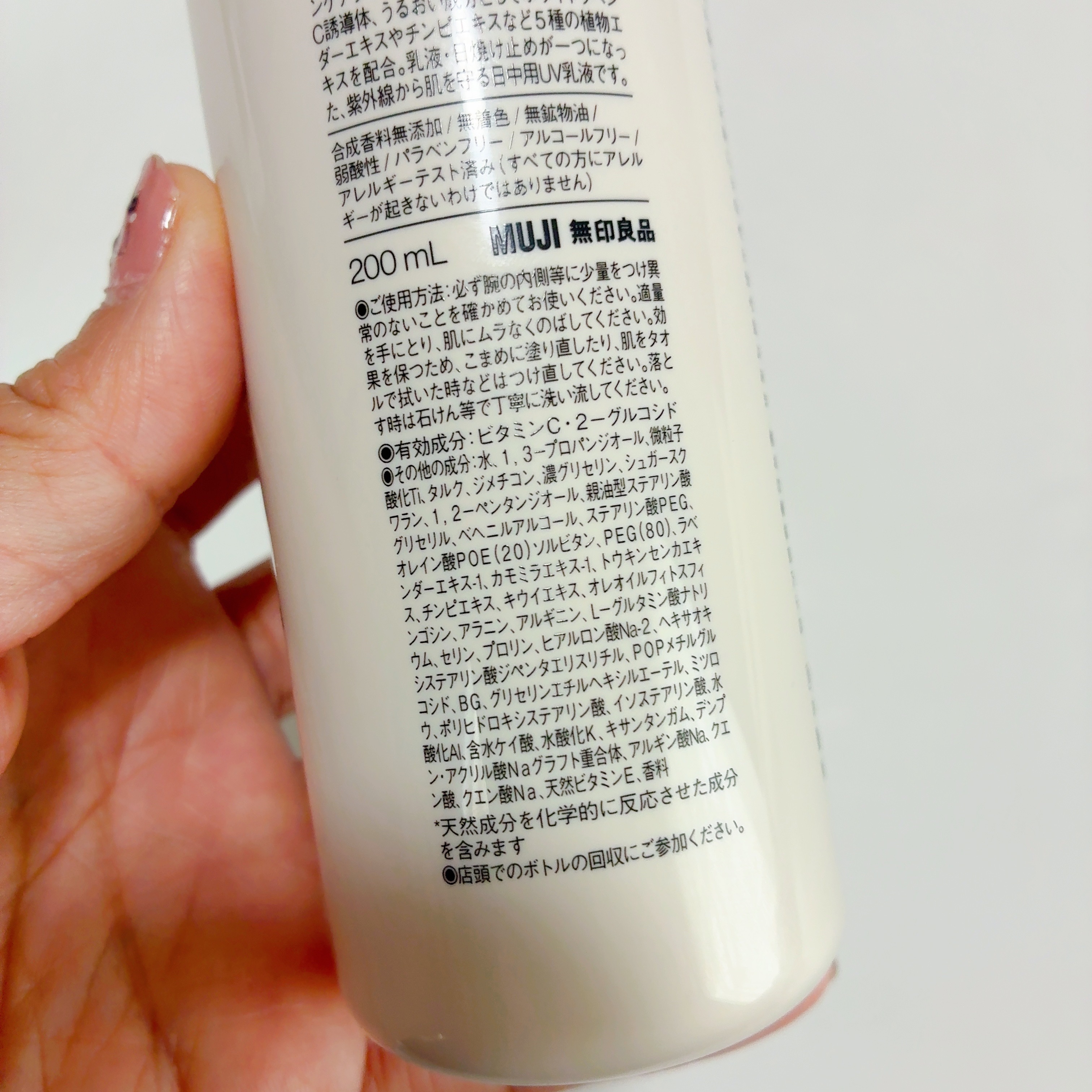 無印良品薬用ブライトニングUV乳液メラニンの生成を抑えシミ・ソバカスを防ぐ、天然由来成分にこだわった日中乳液!有効成分としてビタミンC誘導体、うるおい分としてホワイトラベンダーエキスやチンピエキスなど5種の植物エキスを配合乳液・日焼け止めが一...