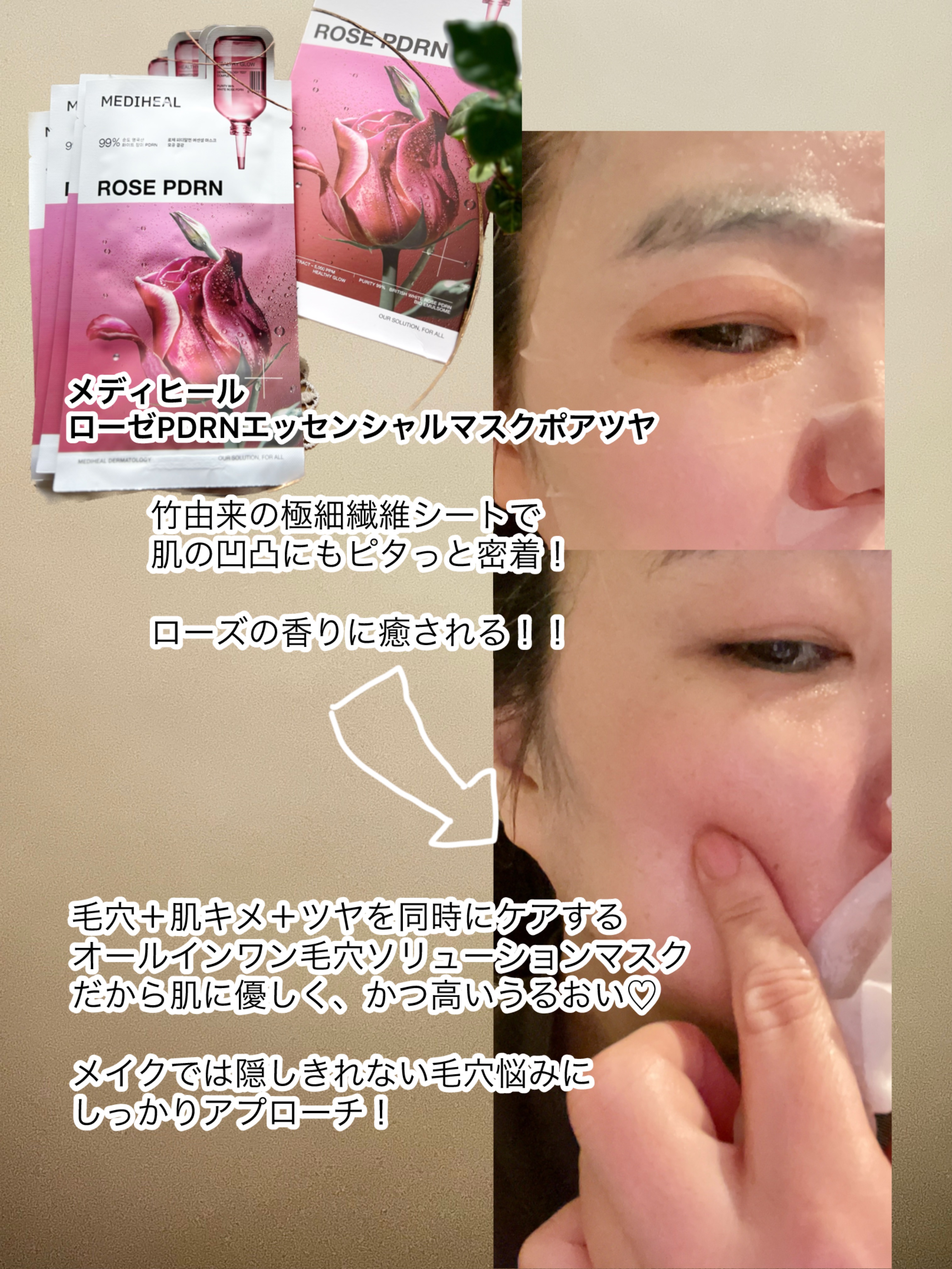 メディヒールローゼPDRNエッセンシャルマスクポアツヤローゼPDRNエッセンシャルマスクポアツヤはイギリス産の高純度99%植物性ローズ由来PDRNを配合しているとのこと🌹 毛穴+肌キメ+ツヤを同時にケアするオールインワン毛穴ソリューションマス...