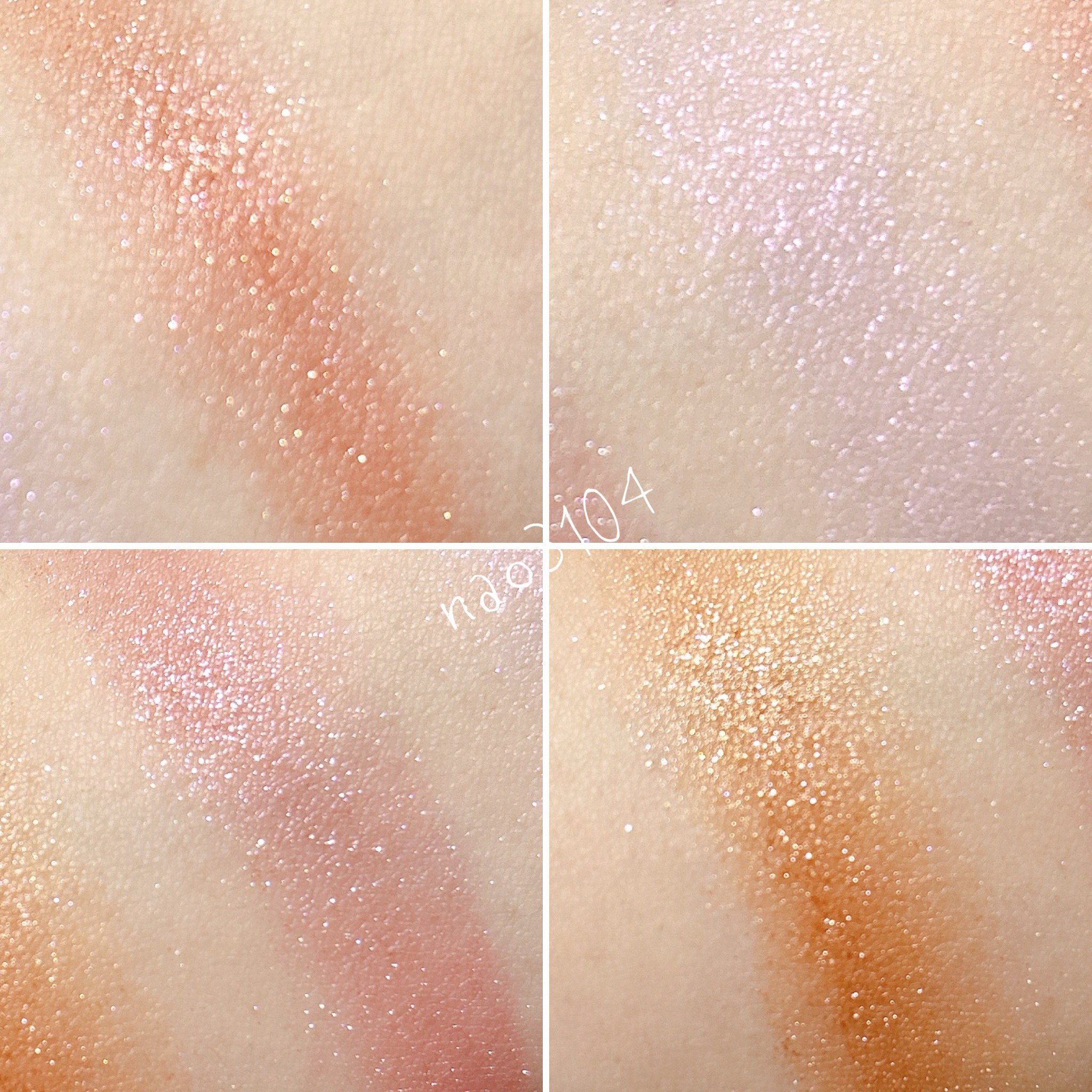 *NARSナーズ*#ハードワイヤードアイシャドー購入したカラーを全色スウォッチ❗️✔︎5334MELROSEピンクベースにゴールドラメ。肌馴染み最高です。✔︎5338PATTAYAブラウンベースに、ゴールドラメが所狭しと!✔︎5339MEND...