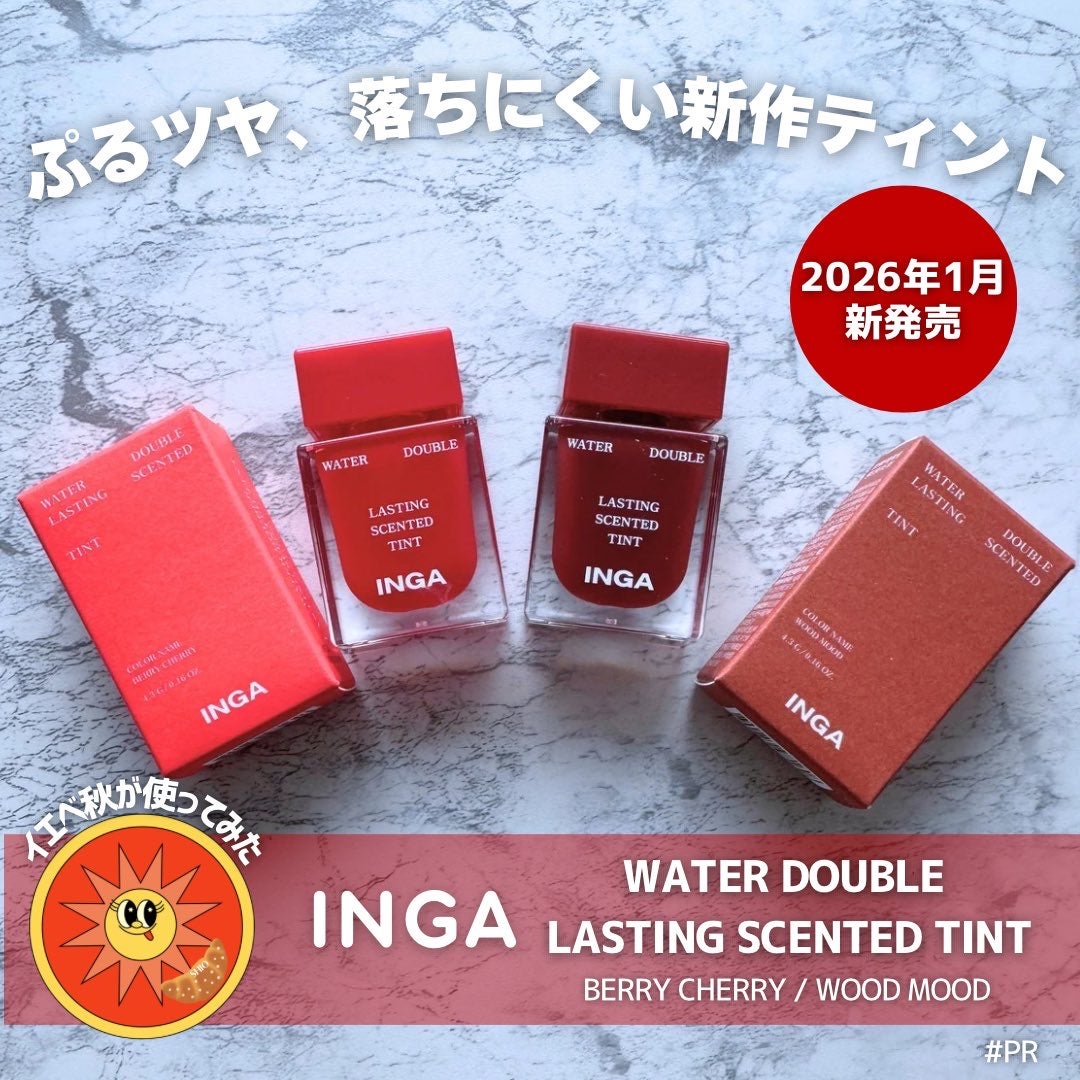 うるっと高発色!香水みたいなティント出た👀@inga_jp#PR🌟ウォーターダブルラスティングセンティッドティント見て見て!このキュートな香水瓶...じゃなくてこれティントなんだよ〜👀🫶全8色で、どれも透明感のあるツヤ仕上がりで重ねるほど深み...