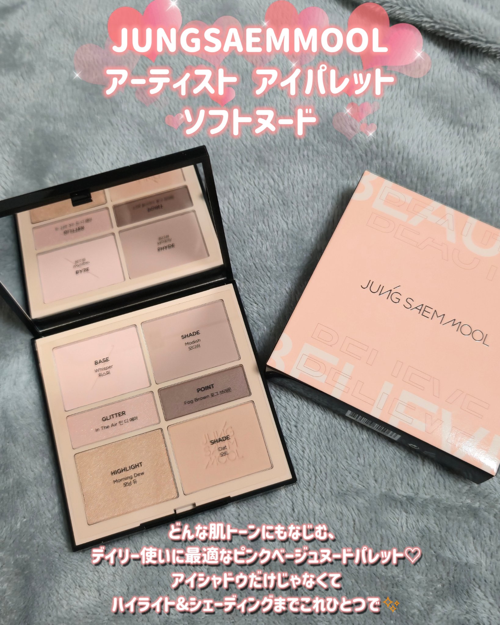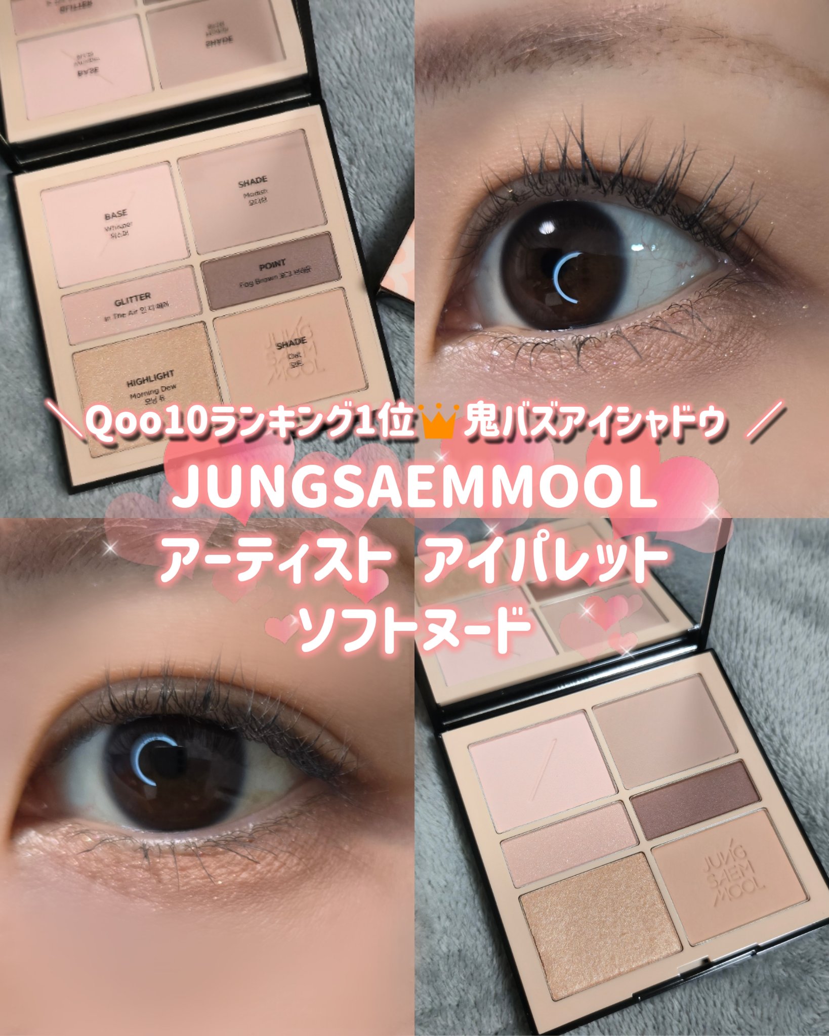 #PRJUNGSAEMMOOLアーティストアイパレットQoo10ランキング1位のバズりアイシャドウ🥇どんな肌トーンにも馴染むピンクベージュヌードパレットでデイリー使いに最適🫶🏻ハイライト&シェーディングまでこれひとつでOKなのも嬉しい💓捨て色...