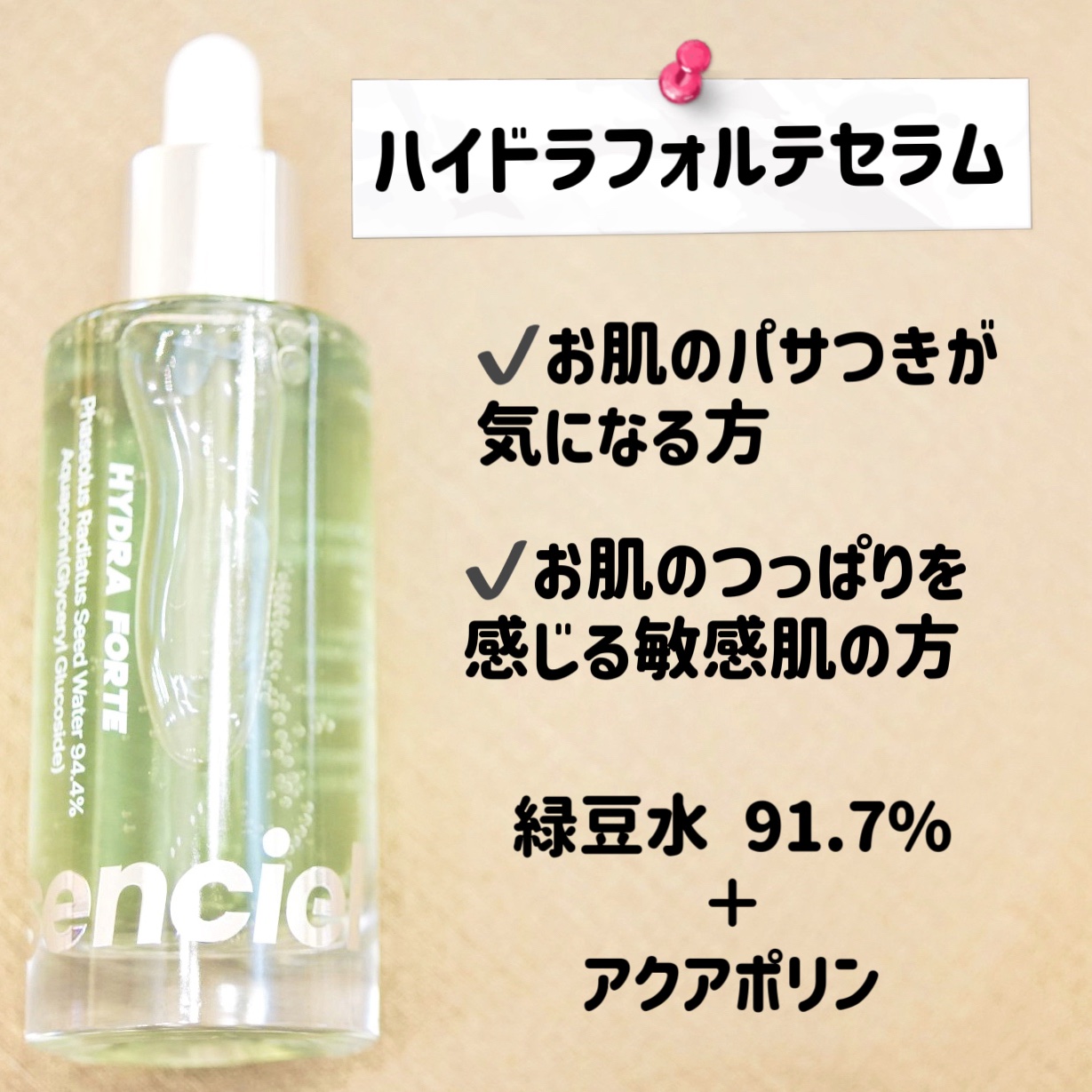 【essencielハイドラフォルテセラム】💧肌がごくごく飲む“水分導入セラム”💧乾燥もインナードライも、これ1本で水分爆入れ肌にうるおいを巡らせる、まるで”水の通訳”のような導入美容液💚緑豆水91.7%肌に水分を補って安定させ、水分バランス...