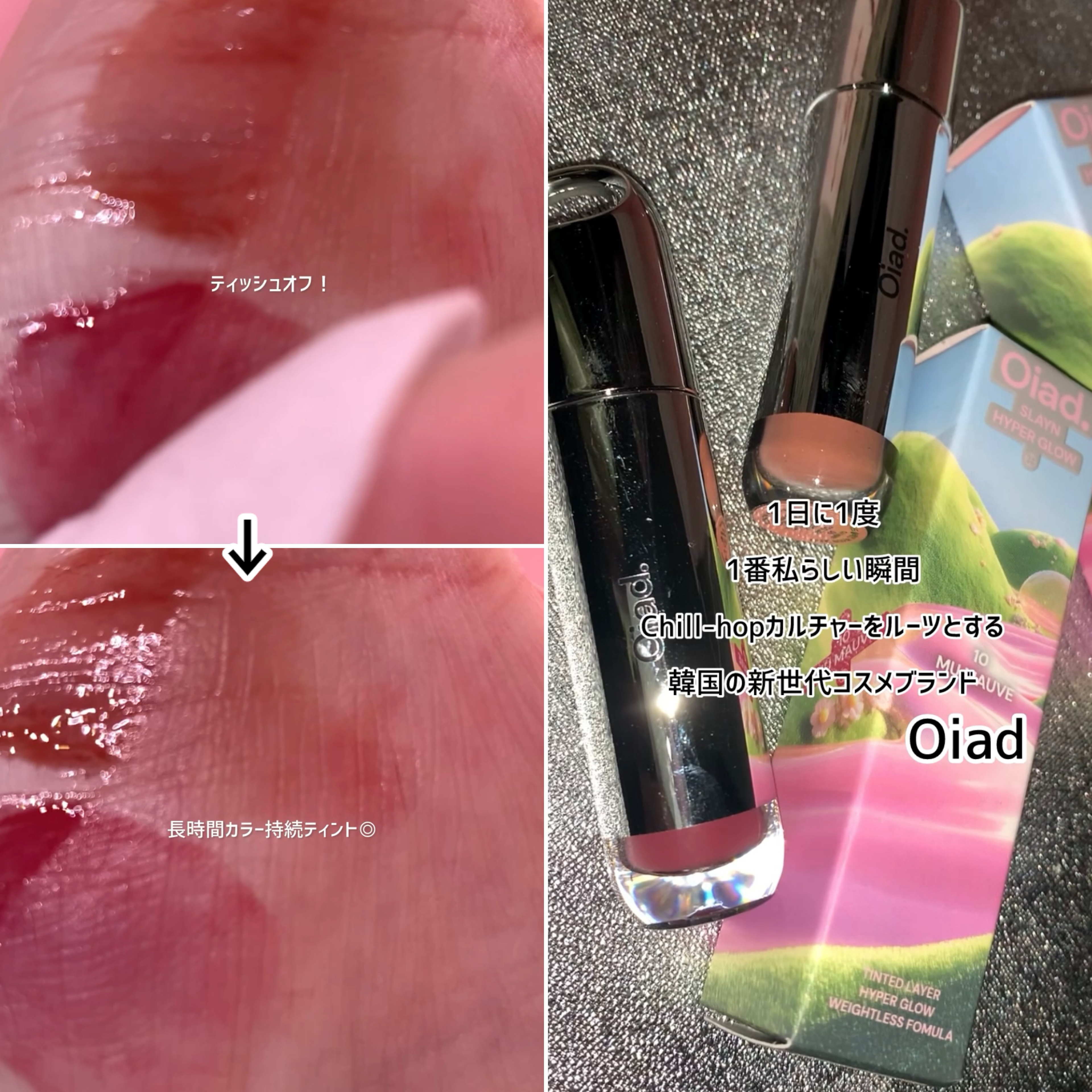 - POINT 01 すべての肌トーンに馴染む10色のシェード ライトカラーからディープカラーまで、肌トーンにとらわれず楽しめる幅広いカラーバリエーション。 くすみにくくクリアに発色する、独自の繊細なカラー POINT 02 オアドだけのこだわりのグロウ技術 独自の Layer Split (レイヤースプリット)技術を採用。 カラーはしっかり唇に密着、ツヤはガラスのように輝く #クリアに色づくコーティング #二重レイヤリング システム POINT 03 ベタつかず透明感をキープするAir-glowテクスチャー こだわりのグロウオイルを独自の比率でブレンドし、ベタつきを抑えながらもツヤと持続力を両立。 軽やかに仕上がり、澄んだツヤが続く。