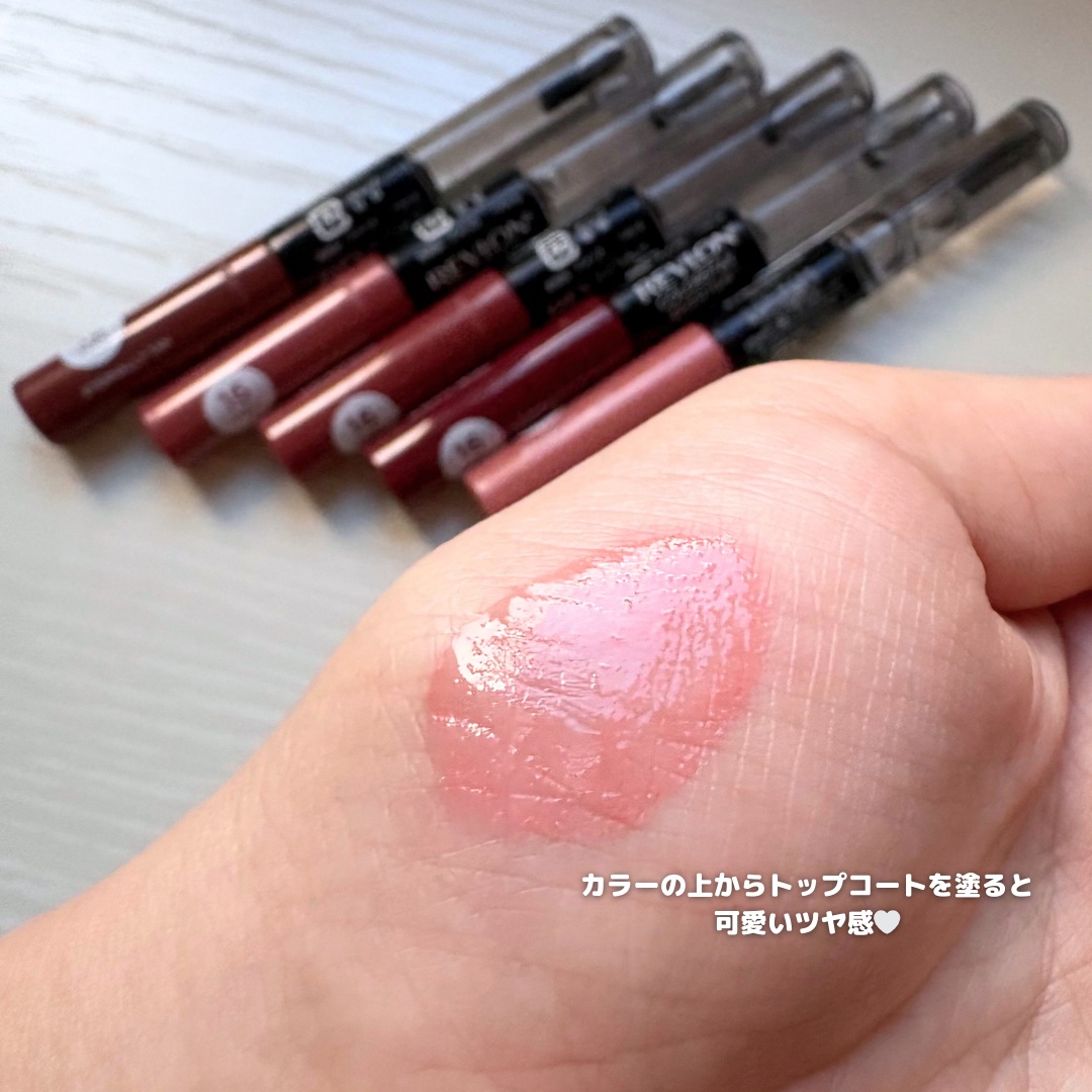 - <限定> 色持ちとツヤ感を両立 16時間*¹落ちにくい、2in1リップ ■リップカラーで美発色、トップコートでツヤ感を与えながら、カラーをキープ ■ エナメルのようなツヤ感を演出 ■ 98%が保湿成分*²のトップコートでうるおいキープ *¹ レブロン研究所調べ(個人差が出る場合があります) *² エモリエント成分:水添ポリデセン、スクワラン、 保湿成分:カミツレ花/葉エキス、フィタントリオール