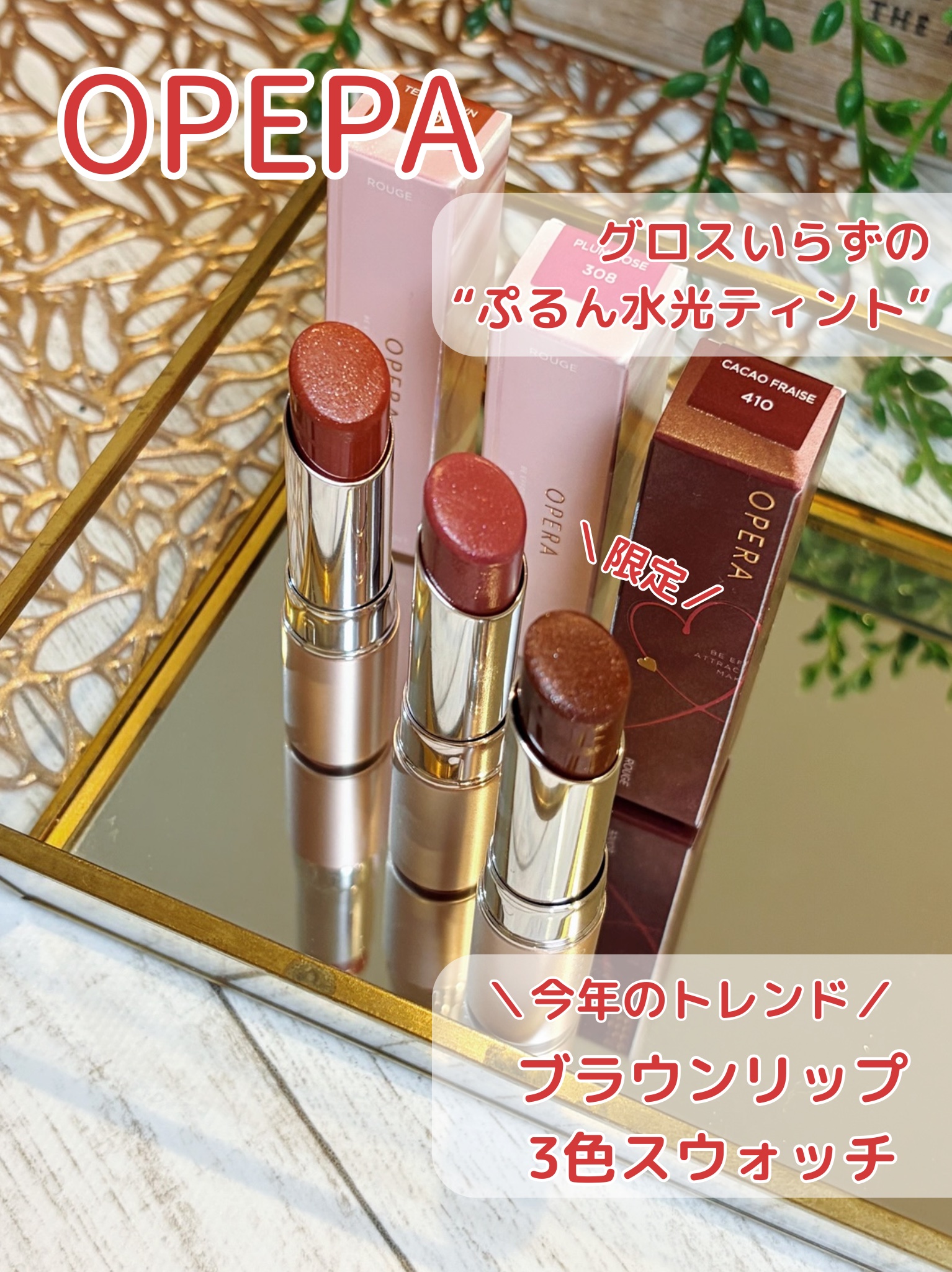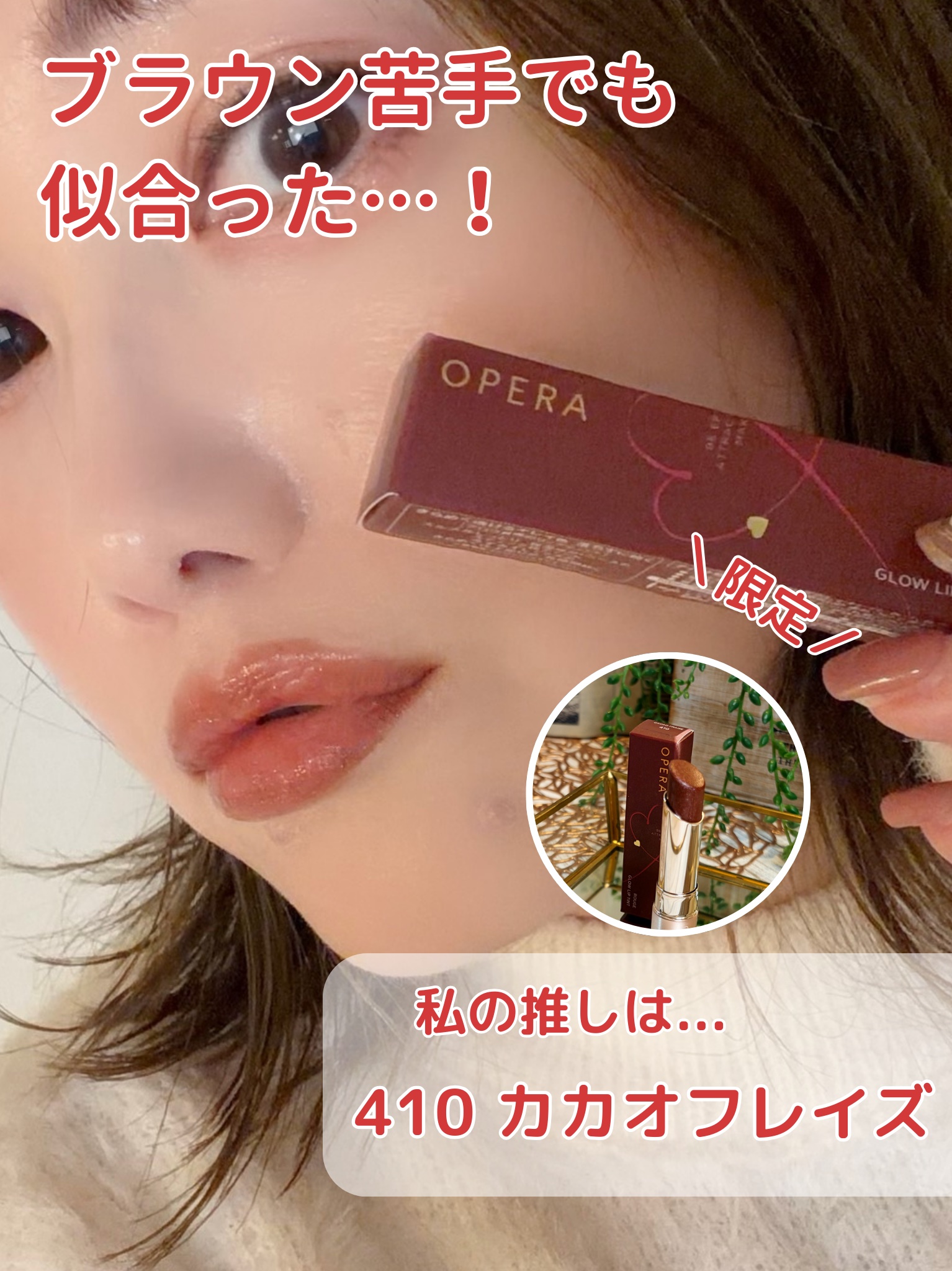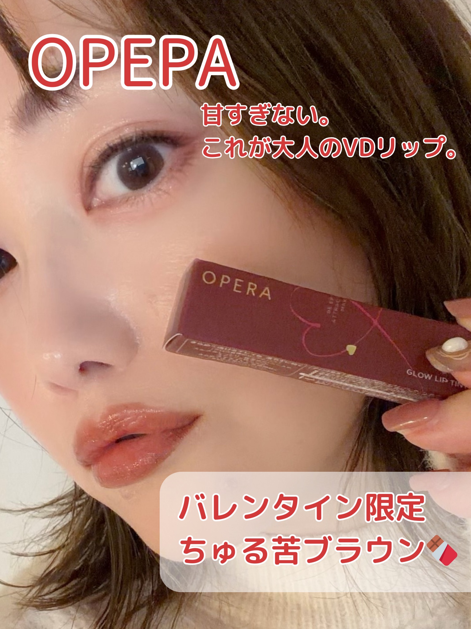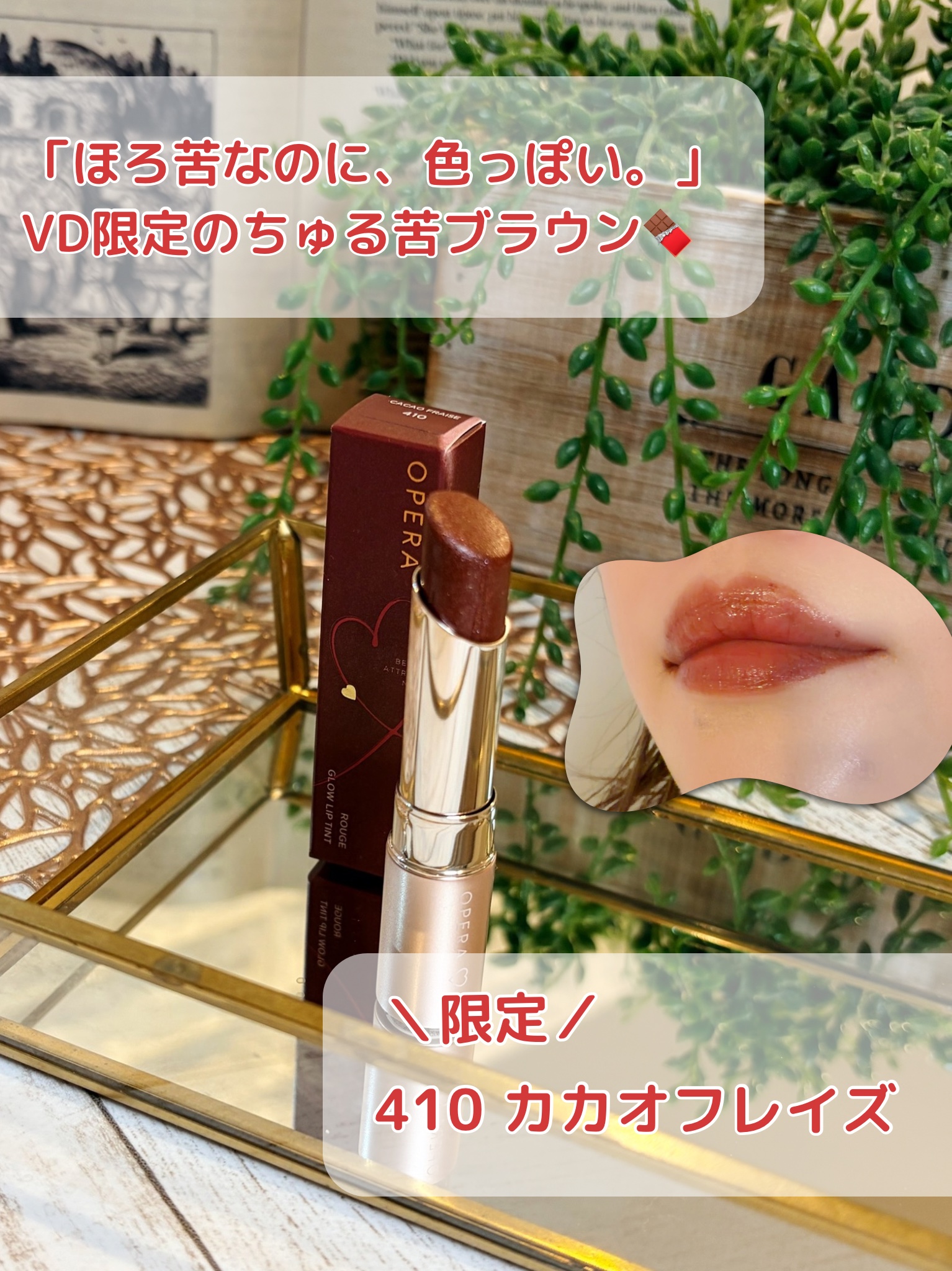.オペラのティントのバレンタイン限定色410カカオフレイズはピンクラメが入ったチョコレートブラウン🍫🍓フリーズドライのいちごが散りばめられたチョコみたいでかわいすぎませんか…!オペラのリップってかわいらしい感じの色が多いイメージだったけどこれ...