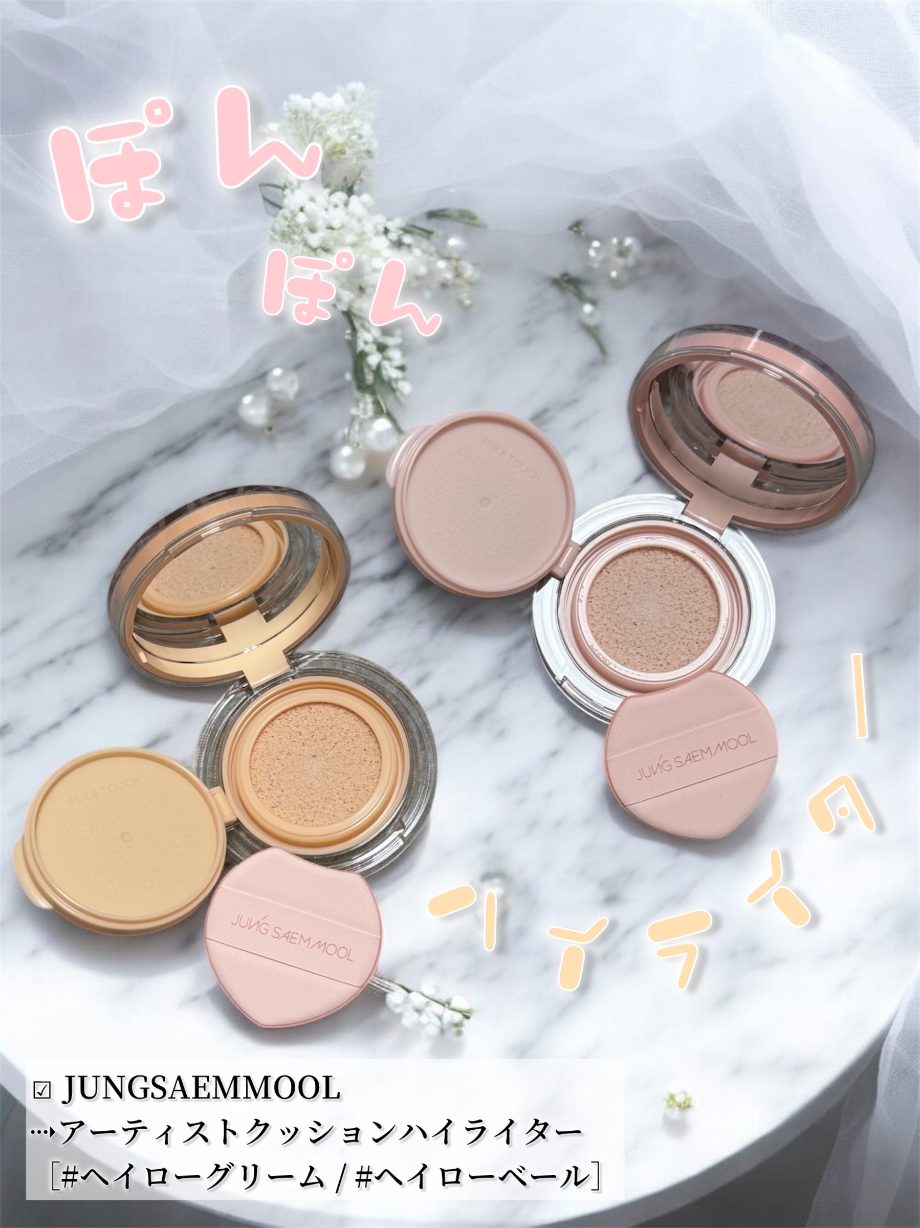 JUNGSAEMMOOLアーティストクッションハイライターヘイローグリームヘイローベール“クッションの名家”ジョンセンムルから新しく登場したクッションタイプのハイライター。水分感のあるテクスチャ。パフで取って乗せると、ナチュラルに輝きました。...