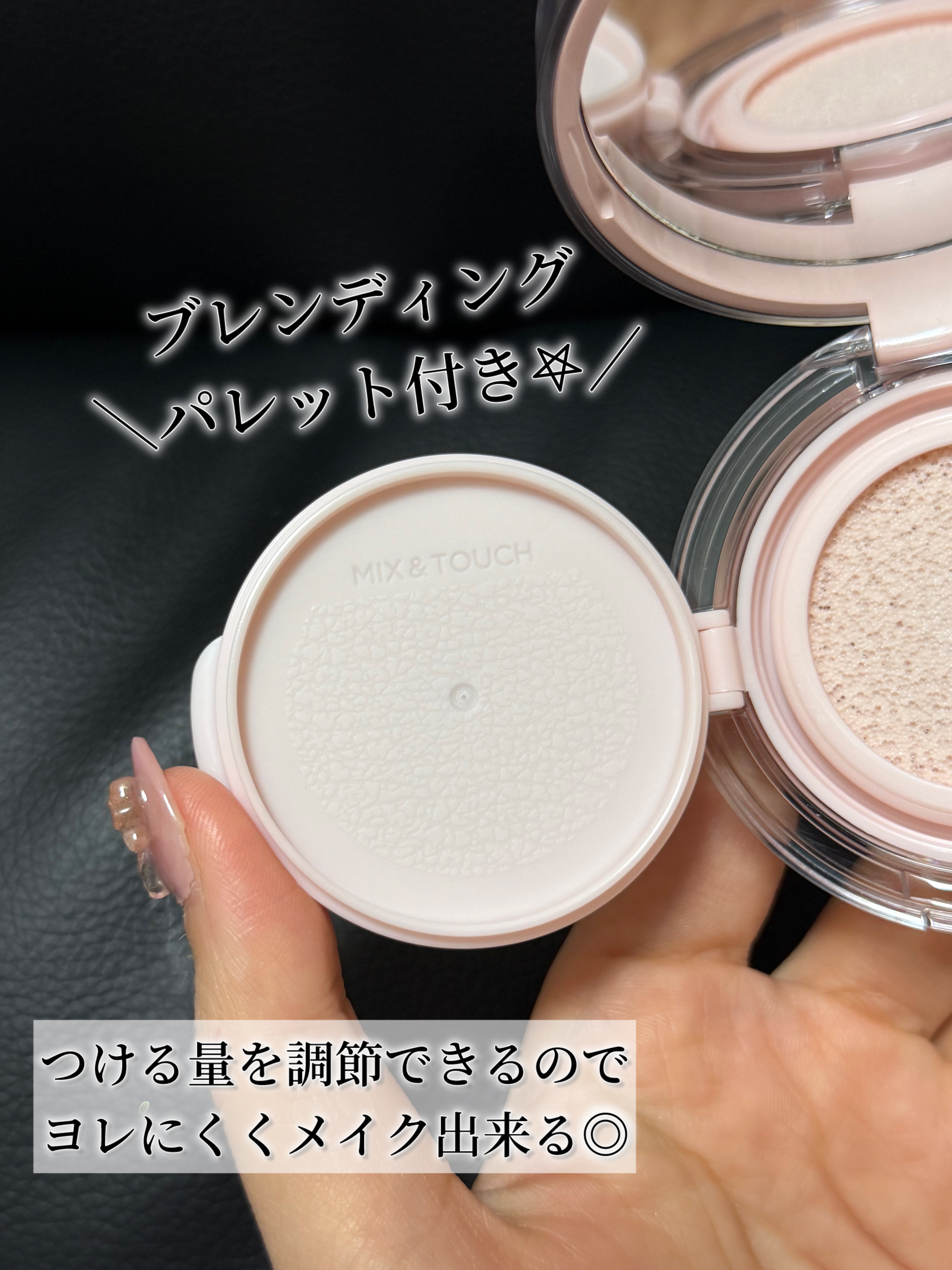 触ってみるとふっかふかで気持ちいい! クッションファンデのパフなので、 しっかりはしているんだけど 表面がふかふか柔らかめで 優しい触り心地が嬉しい🧸🌸 塗ってみると、水々しいので 保湿力はありつつサラサラに✨ 塗ってる感がないのに毛穴レス!!! ニキビなど気になる部分は ぽんぽんと2度のせしたら カバー力もめっちゃある🙆♀️🙆♀️ 水々しいので乾燥も感じにくく 使い心地とても良い( ・ω・ )/💓 1日さんざん喋り倒して、 帰宅したマスクには… 結構ファンデーションついてたけど ファンデ落ちたなぁ💦って感じの むけた感は全然ないので不思議🙄🌸