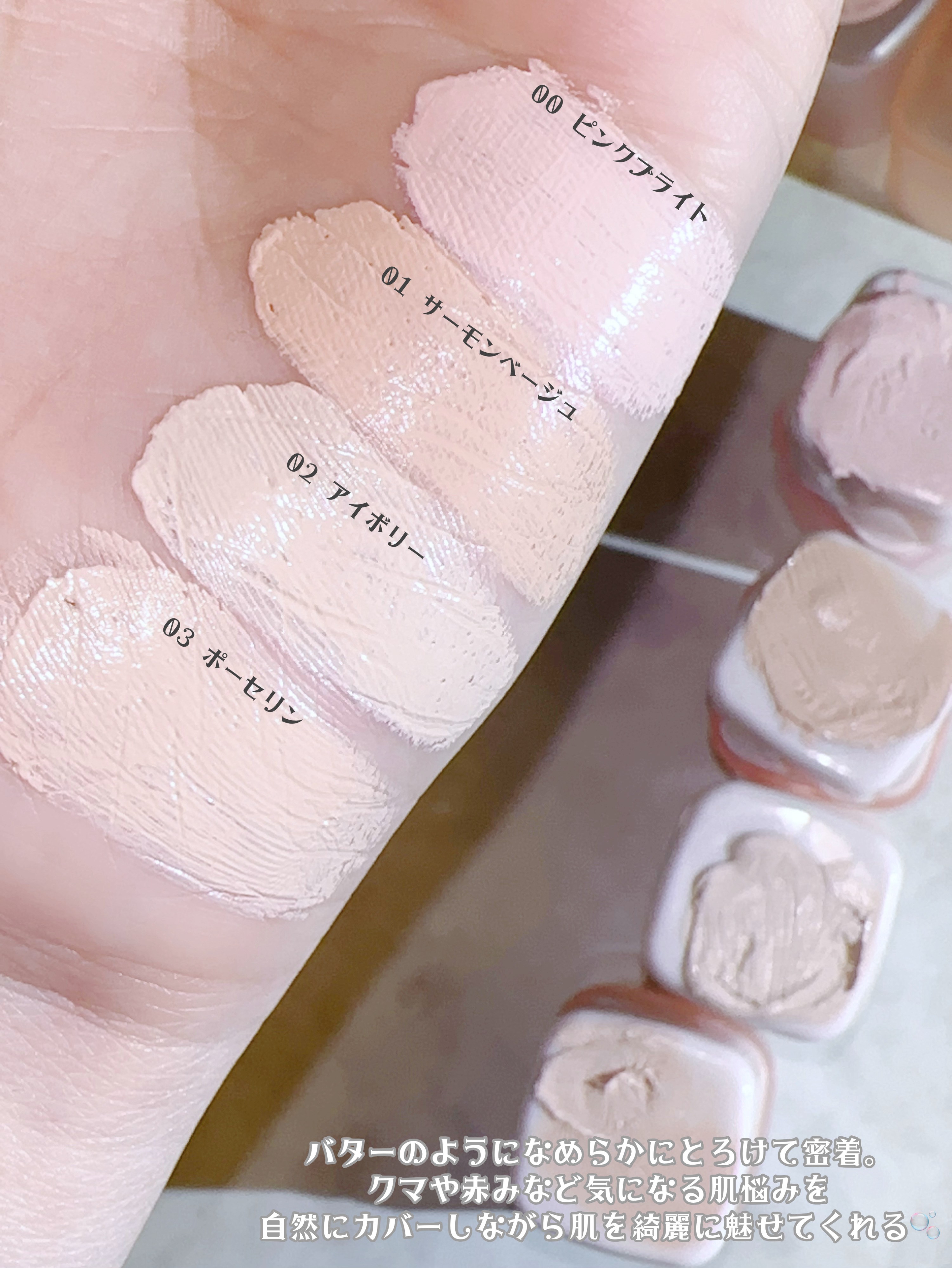 - バターが溶け込むようにお肌になじみ、毛穴の凹凸を埋めてなめらかなお肌に仕上げるプライマー効果を持ったコンシーラー。 毛穴が気になりやすい頬の三角ゾーンをカバーし、つるりとなめらかなほっぺを演出します。 <00 ピンクブライト> 明るいピンクベースのベージュカラー。 <01 サーモンベージュ> ほのかに赤みを帯びていて落ち着いたトーンのベージュカラー。 <02 アイボリー> 透明感のある明るいアイボリーベースのニュートラルベージュカラー。 <03 ポーセリン> 血色感のあるピンクベースのクールニュートラルベージュカラー。 <Qoo10内「AK BEAUTY OFFICIAL」公式ショップにて2025年2月28日(金)先行発売>