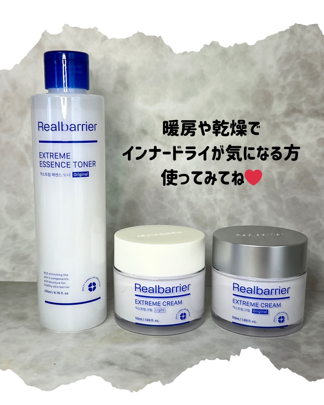 リアルバリア#エクストリームエッセンストナー#エクストリームクリーム Light/Original肌本来の強さを引き出し、外部刺激から肌を徹底的に守るバリアサポートケア。♡エクストリームエッセンストナー美容液と化粧水をひとつにまとめた高保湿ト...