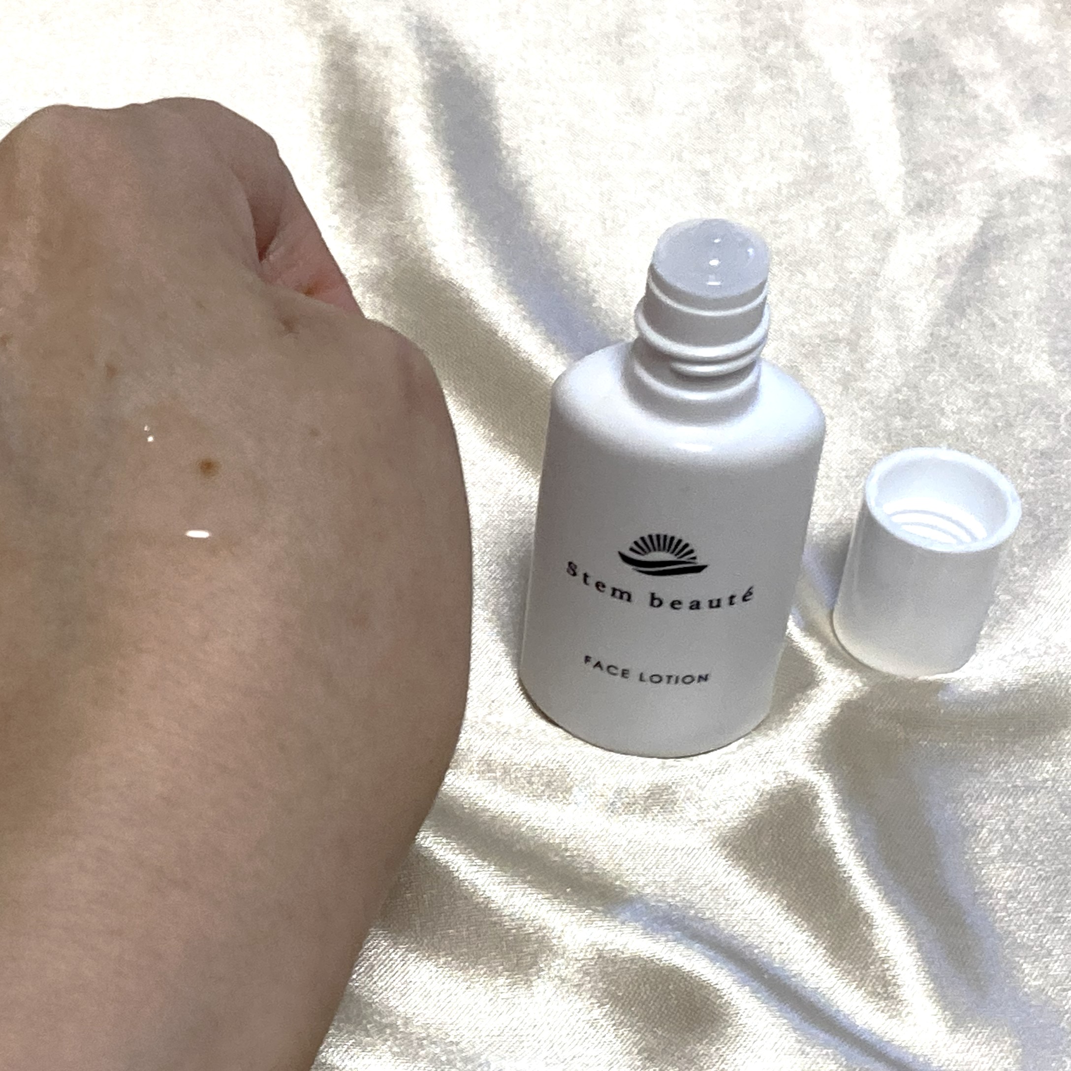 紫外線吸収剤不使用のノンケミカル処方、植物性アルブチン配合 みずみずしくなめらかなテクスチャーで、スーッと伸びがいいです◎ ベタベタせず軽いつけ心地で、薄く伸びてくれるので、塗り直しもしやすいと思いました。