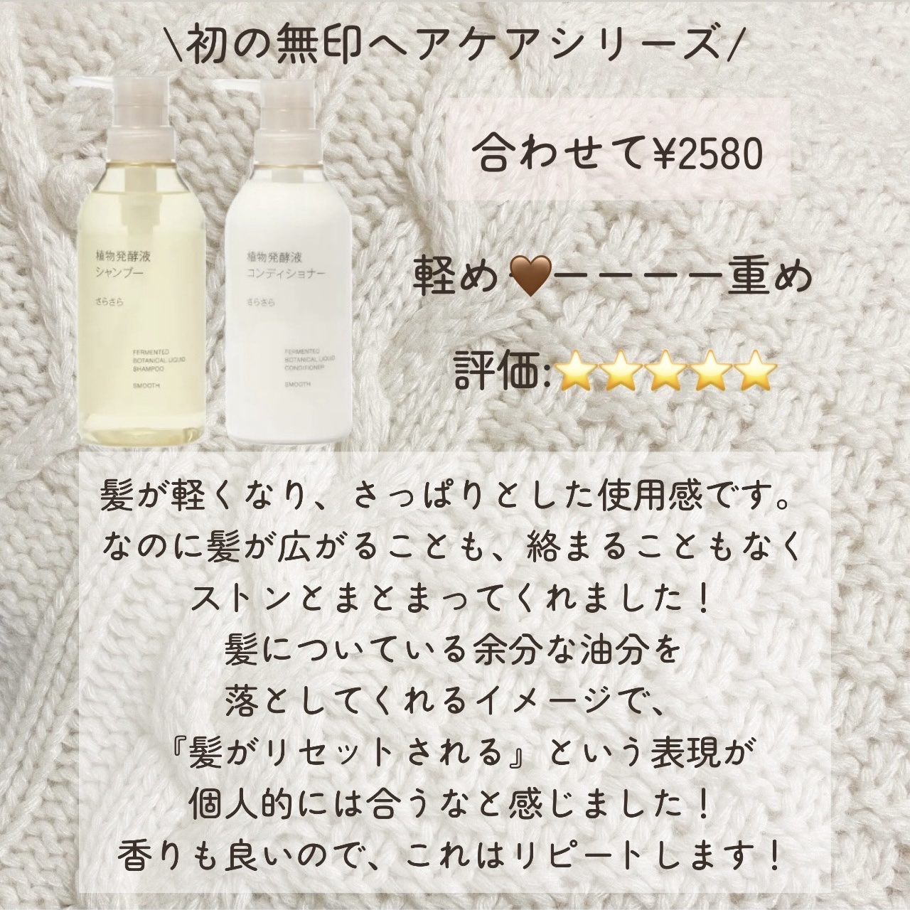 無印良品 植物発酵液 薬用スカルプ シャンプー/コンディショナー 医薬部外品 | 150円 |