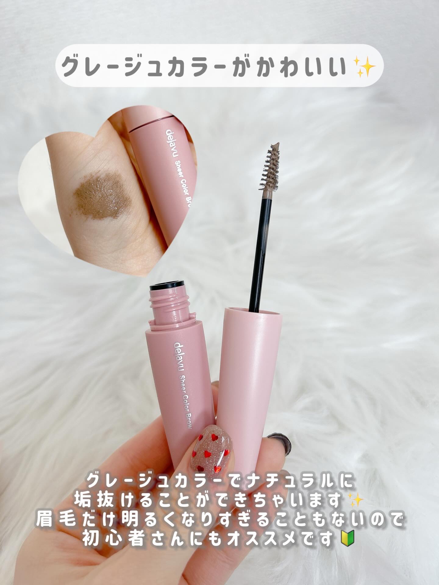 ※デジャヴュさまからいただきました。シアーカラーブロー素肌感を生かすメイクが主流の今。眉メイクだけがしっかり色付いて浮いちゃう...という悩みに合わせて作られた眉マスカラです。dejavu様の細いブラシが塗りやすくほんのりと色づく感じが眉の存...